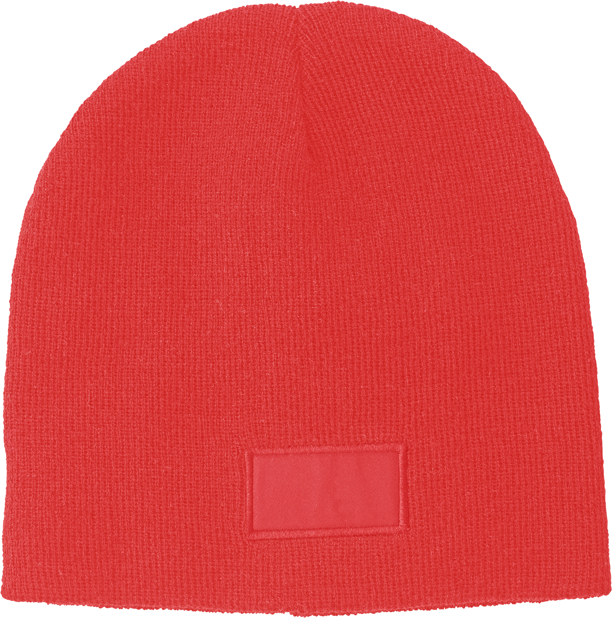 Acrylic beanie, including a matching colour label on the front for printing purposes.