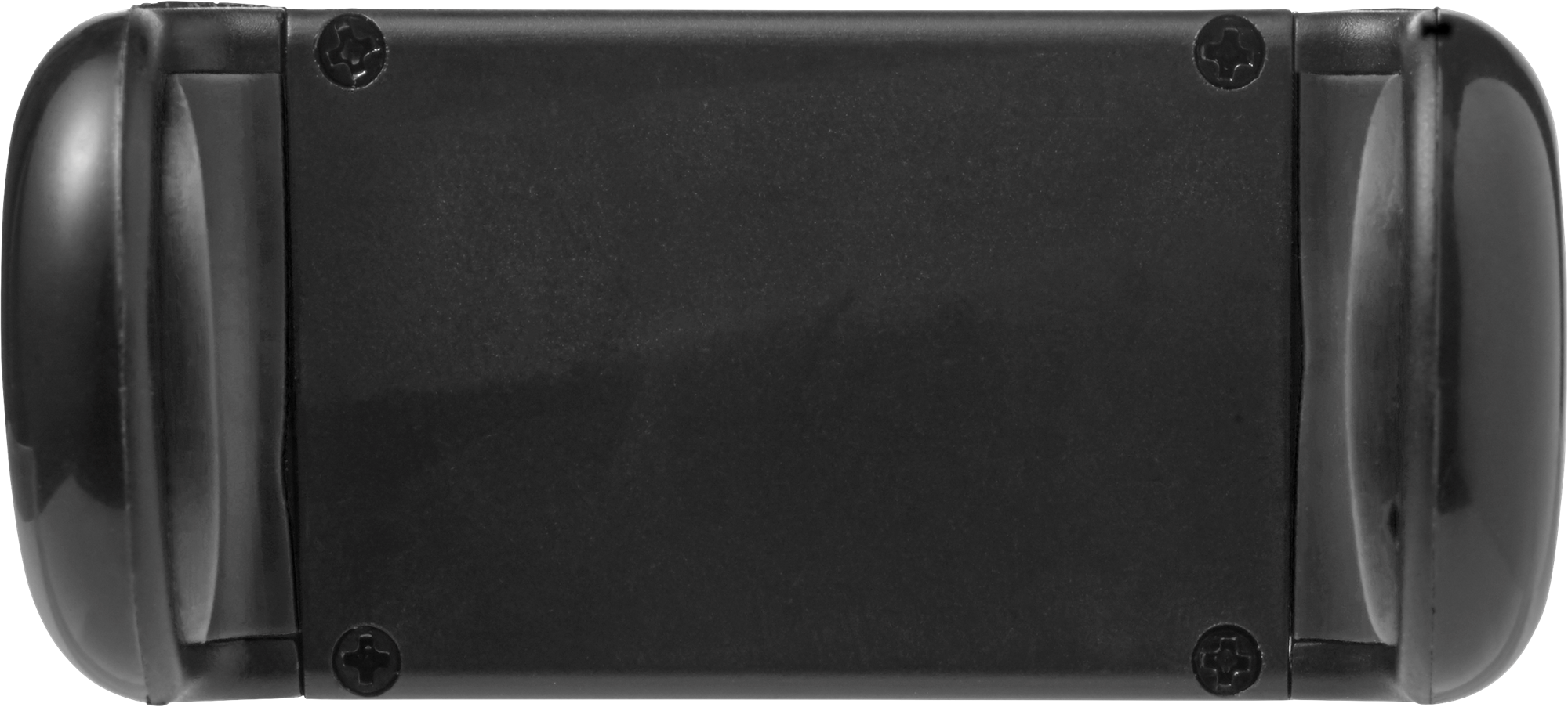 Mobile phone holder with PVC accents, for in the car. The holder attaches to the air vent and can rotate 360 degrees. Extendable sides to fit different smartphones.