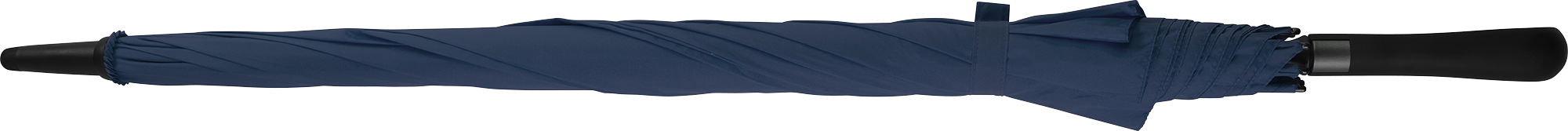 Automatic polyester (190T) umbrella with eight panels a metal shaft and tips, fibre glass ribs, a rubber handle, Velcro closing, and matching pouch.