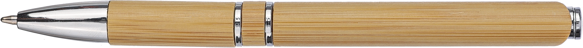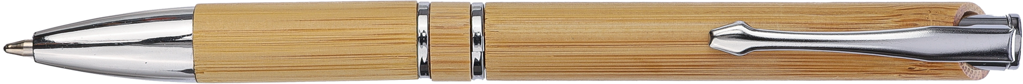 Eco-friendly bamboo ballpen featuring a sleek chrome metal trim for a stylish and sustainable writing experience.