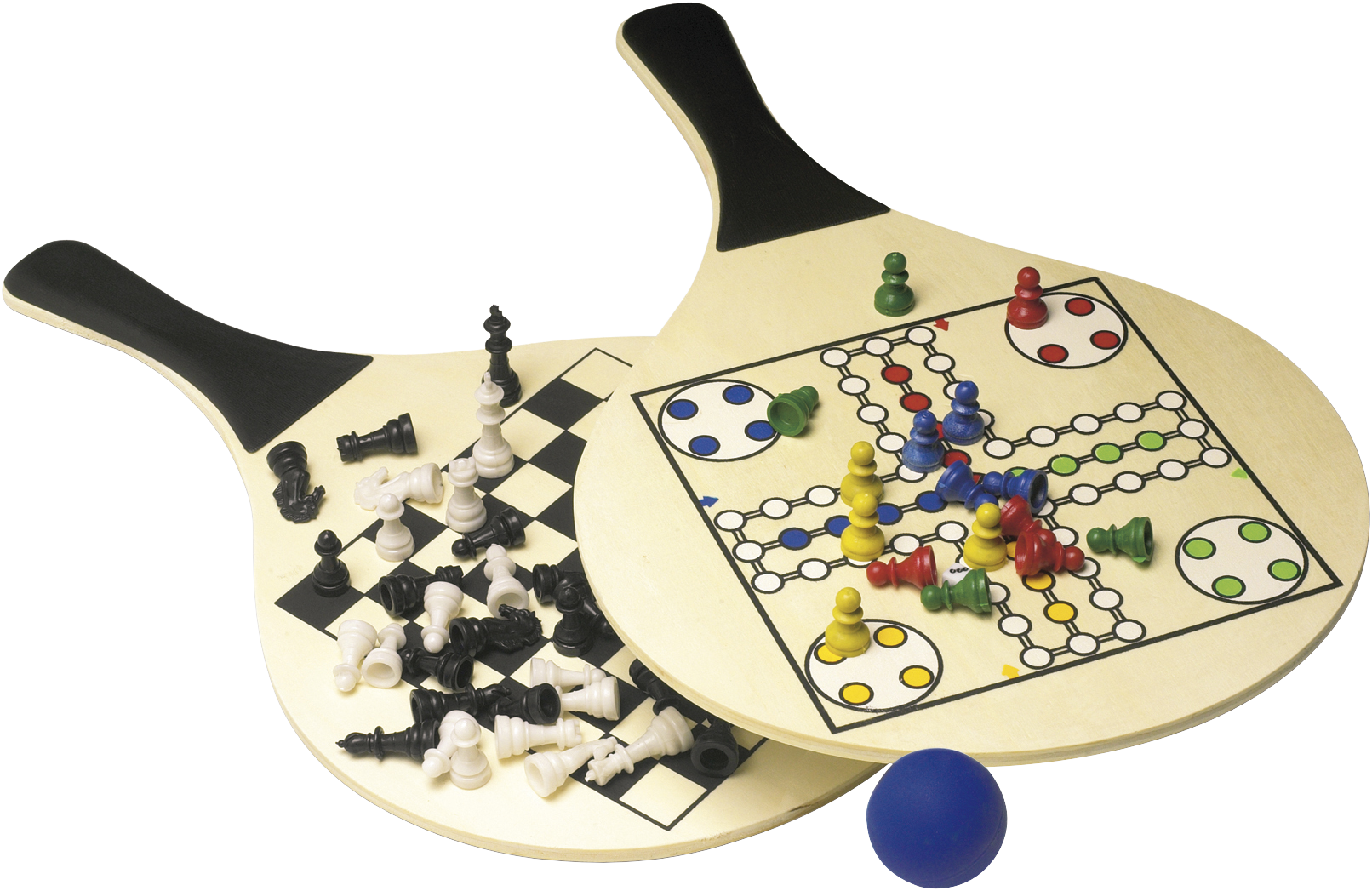 Bat and ball set with chess and ludo games, supplied in a black nylon carry case.