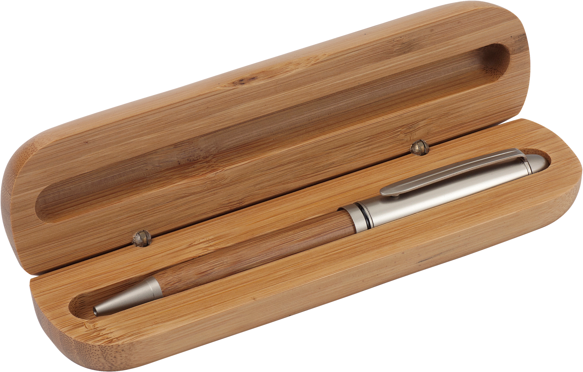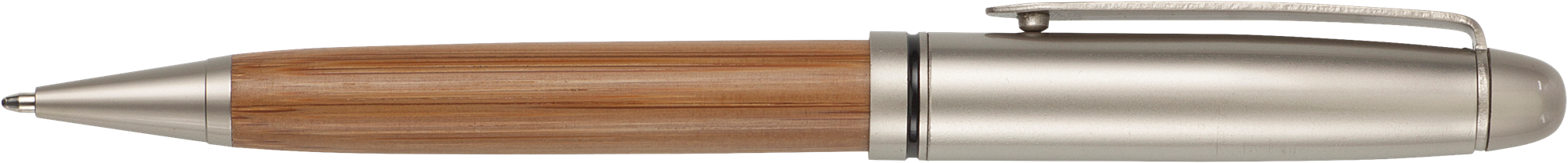 Beech wood ballpen with metal trim parts, blue ink and supplied in a matching box.