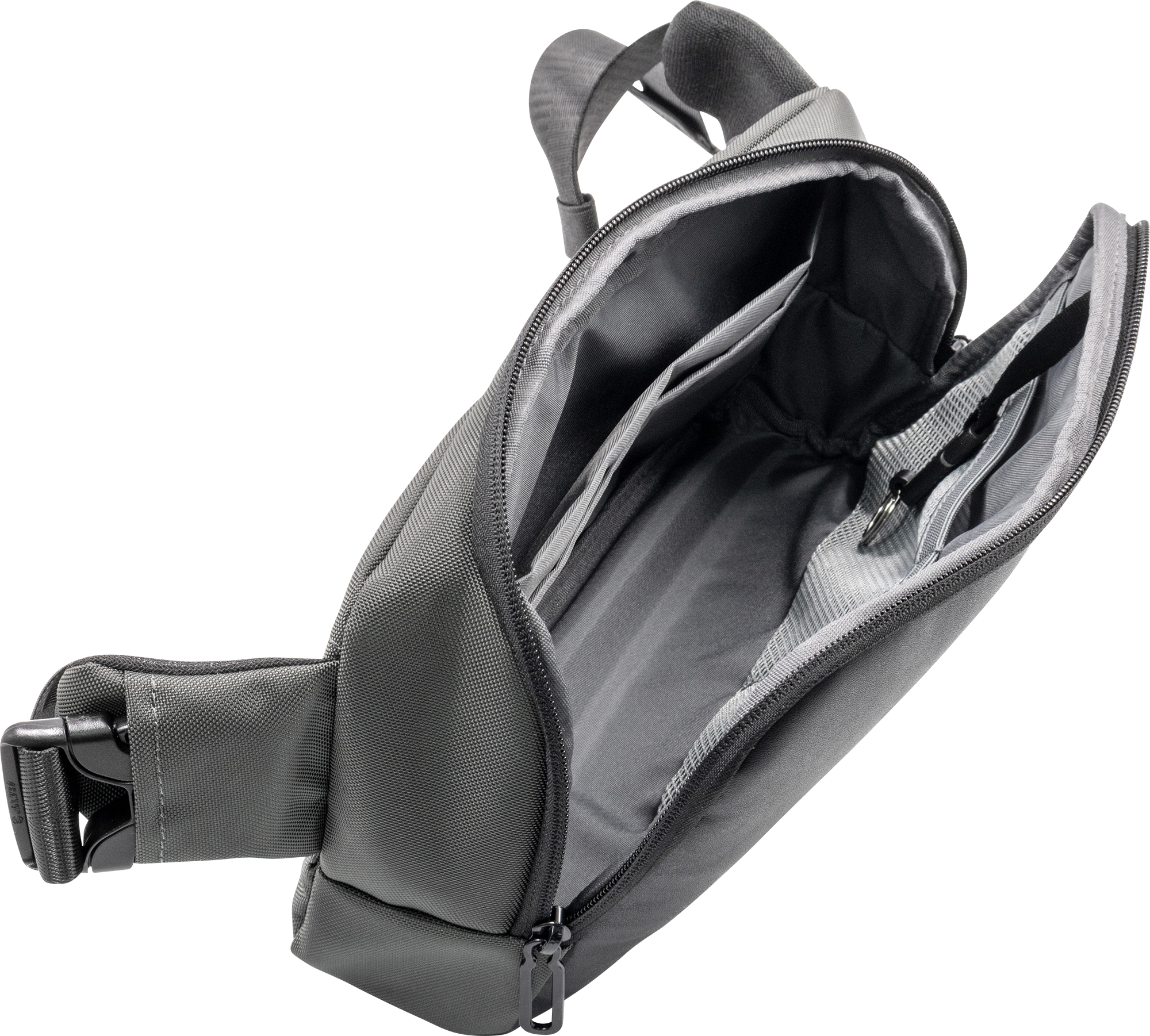 The BrandCharger Edge Crossbody bag combines sustainability, function, and style. Made from 800D recycled water and stain-repellent fabric with vegan leather accents. Features adjustable strap, SBS zipper, sidelock buckle, shockproof padded compartment, and removable keychain. Ideal for daily use.
