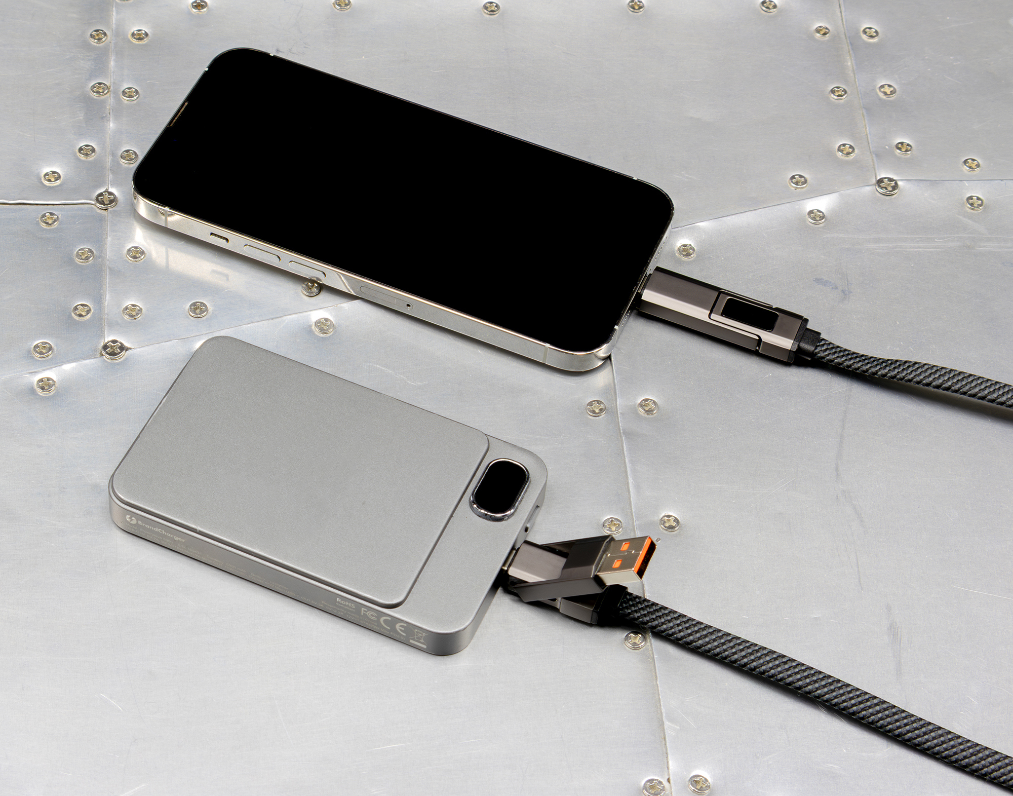 The BrandCharger Thor Eco 4-in-1 cable offers fast charging up to 65W and supports USB 2.0 data transfer. Made from recycled nylon, the 120cm cable includes Type-C and USB-A inputs, with Type-C and Lightning outputs. Combines sustainability, versatility, and high performance in one essential cable.