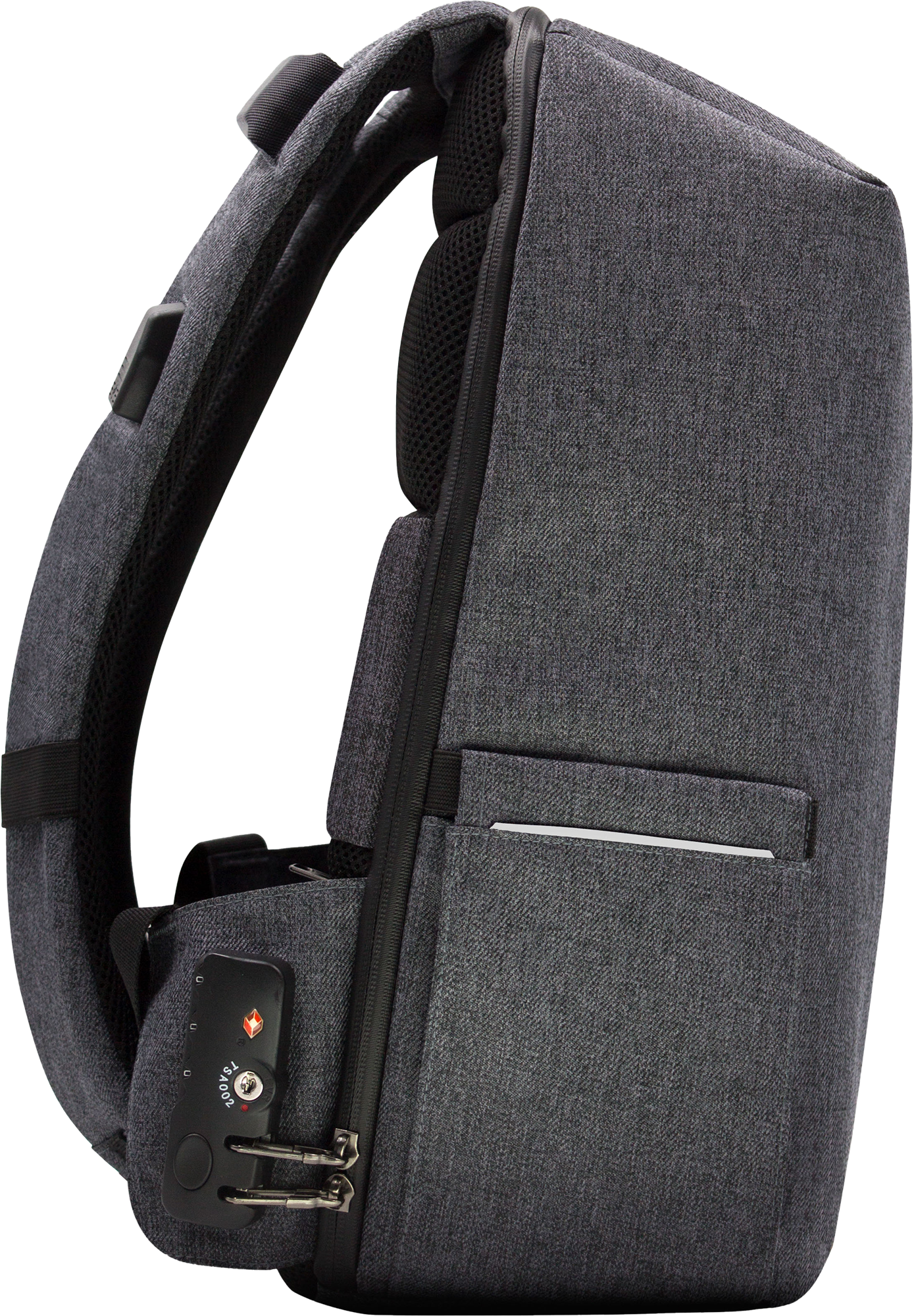 The sustainable and lightweight backpack is made from high-quality, water-resistant fabrics and includes reflective details for nighttime safety. Designed to protect against theft, it features an integrated TSA lock for securing your zippers and a 74 lug lock to attach the bag to objects, keeping your valuables safe. Phantom also offers hidden pockets for convenience, plus padded compartments for a 15.6' laptop, a 10' tablet and other belongings. Additional features include a waterproof zipper, anti-theft compartments, a padded back, and a buckle with a built-in bottle opener.