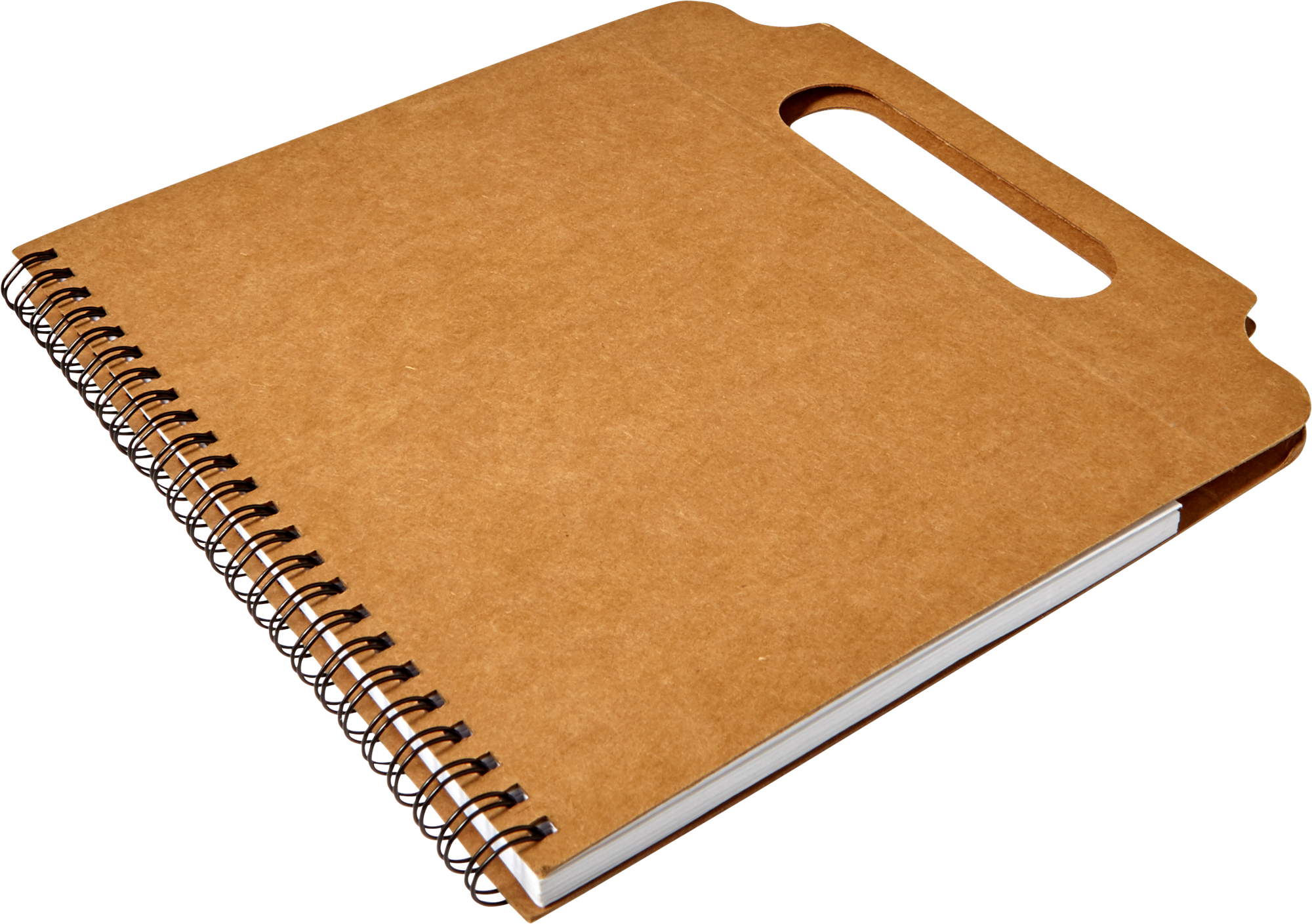 Wire bound cardboard notebook (A5) with various sticky notes. Pen not included.