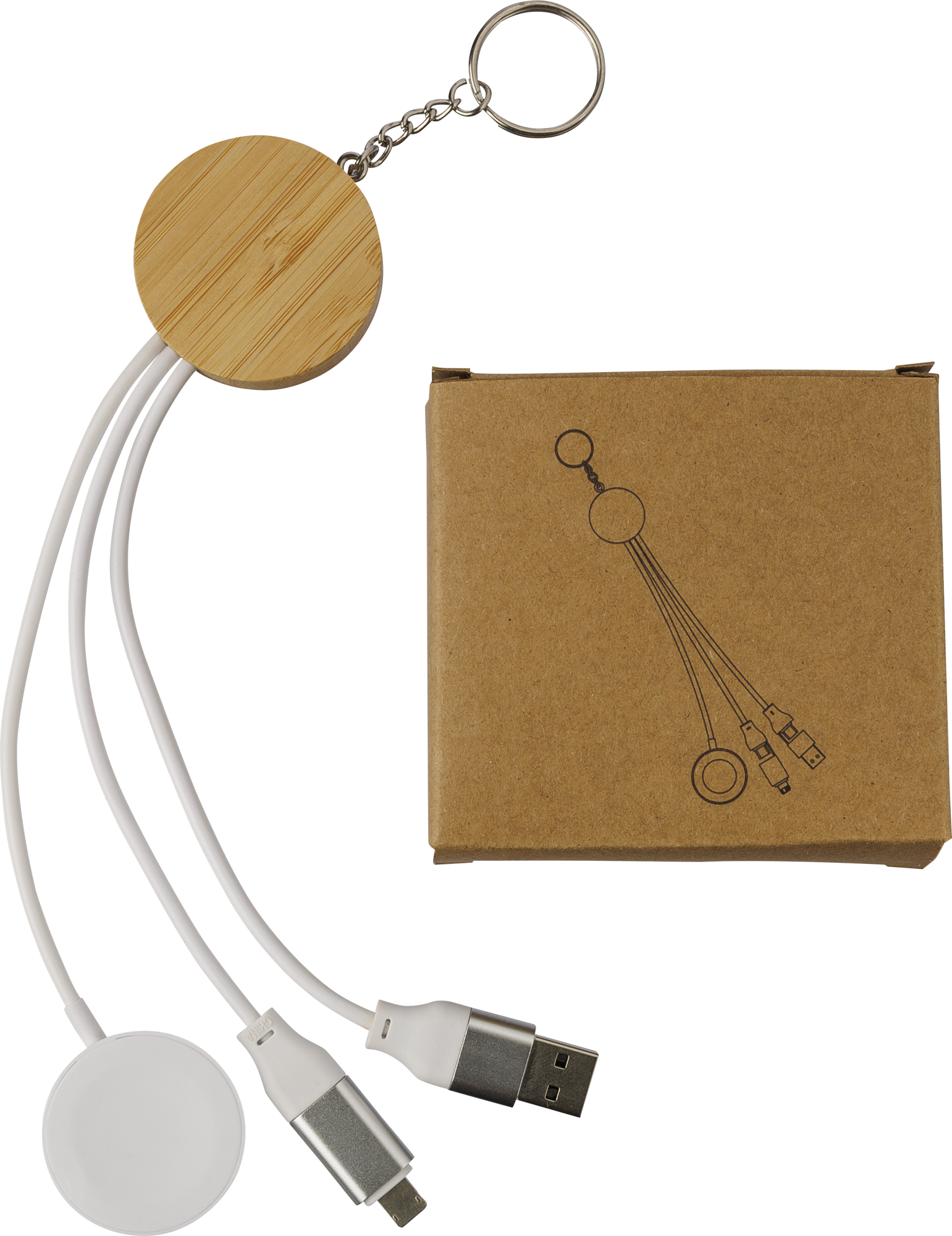 Charging cable set in a TPE material. Includes PD 65W fast charging cables (2-in-1 Type-C/Lightning and USB-A/USB-C) and a universal smartwatch charger. Packed in a brown cardboard box.