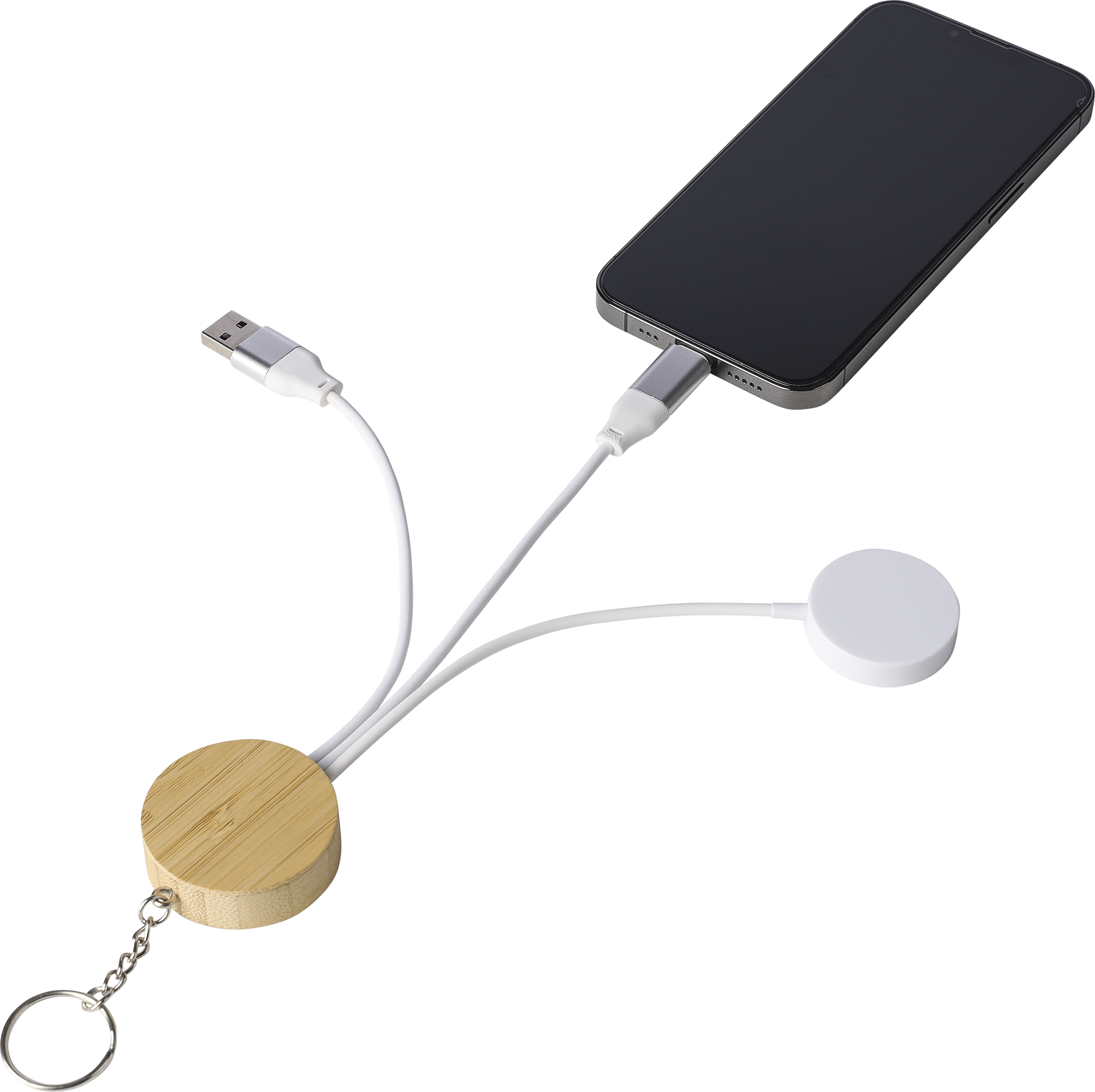 Charging cable set in a TPE material. Includes PD 65W fast charging cables (2-in-1 Type-C/Lightning and USB-A/USB-C) and a universal smartwatch charger. Packed in a brown cardboard box.