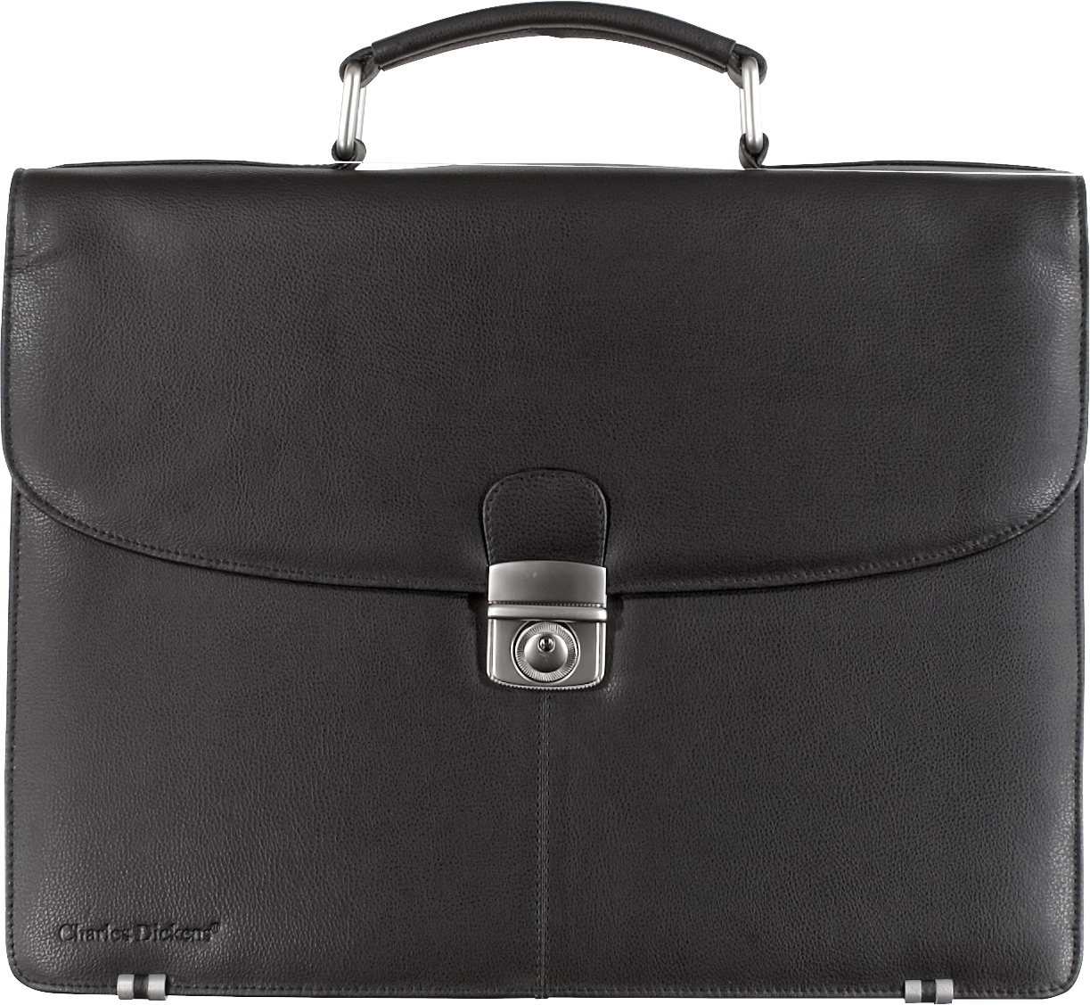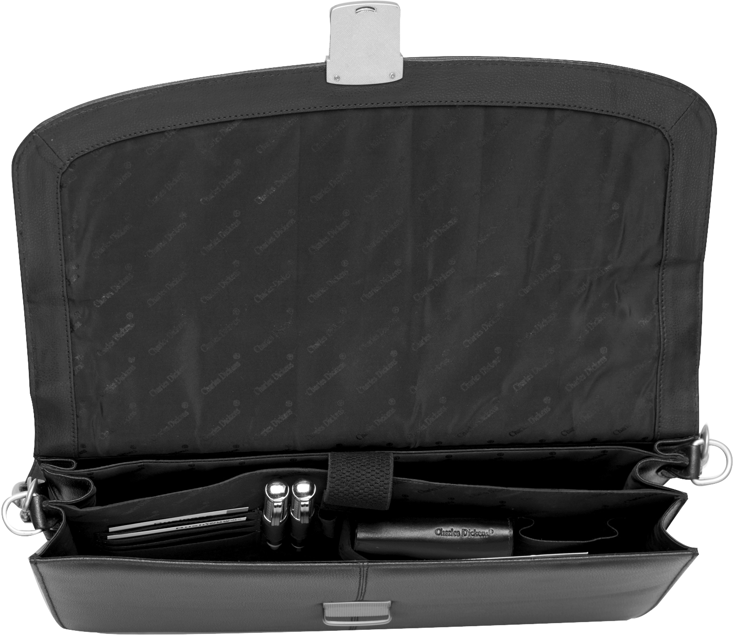 Charles Dickens® leather briefcase with three main internal pockets, adjustable carrying belt, closing with lock, delivered in a luxurious gift box, suitable for a 15,6' laptop.