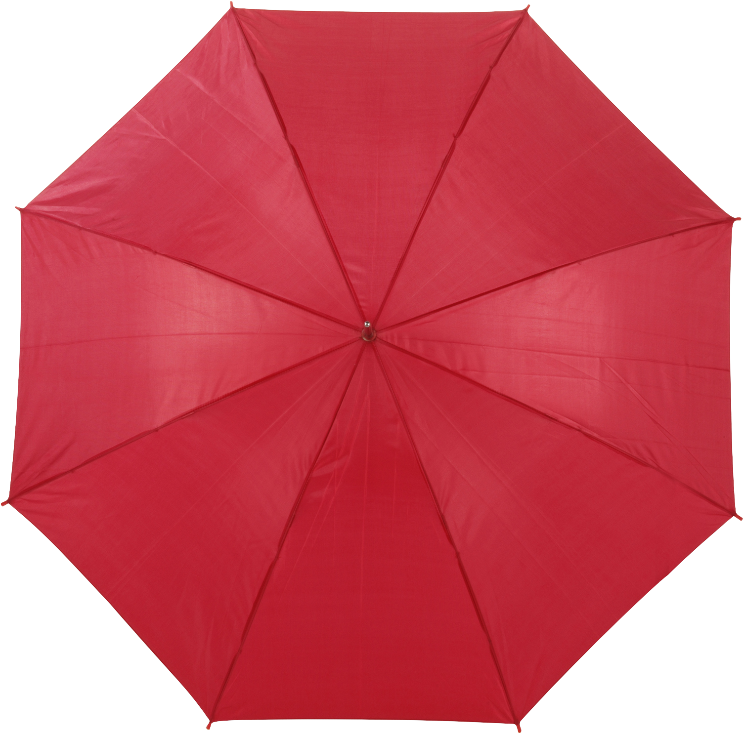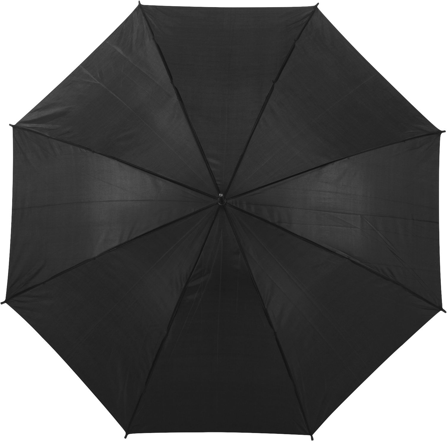 Automatic polyester (170T) umbrella with eight panels and a plastic coloured handle with a Velcro closing.