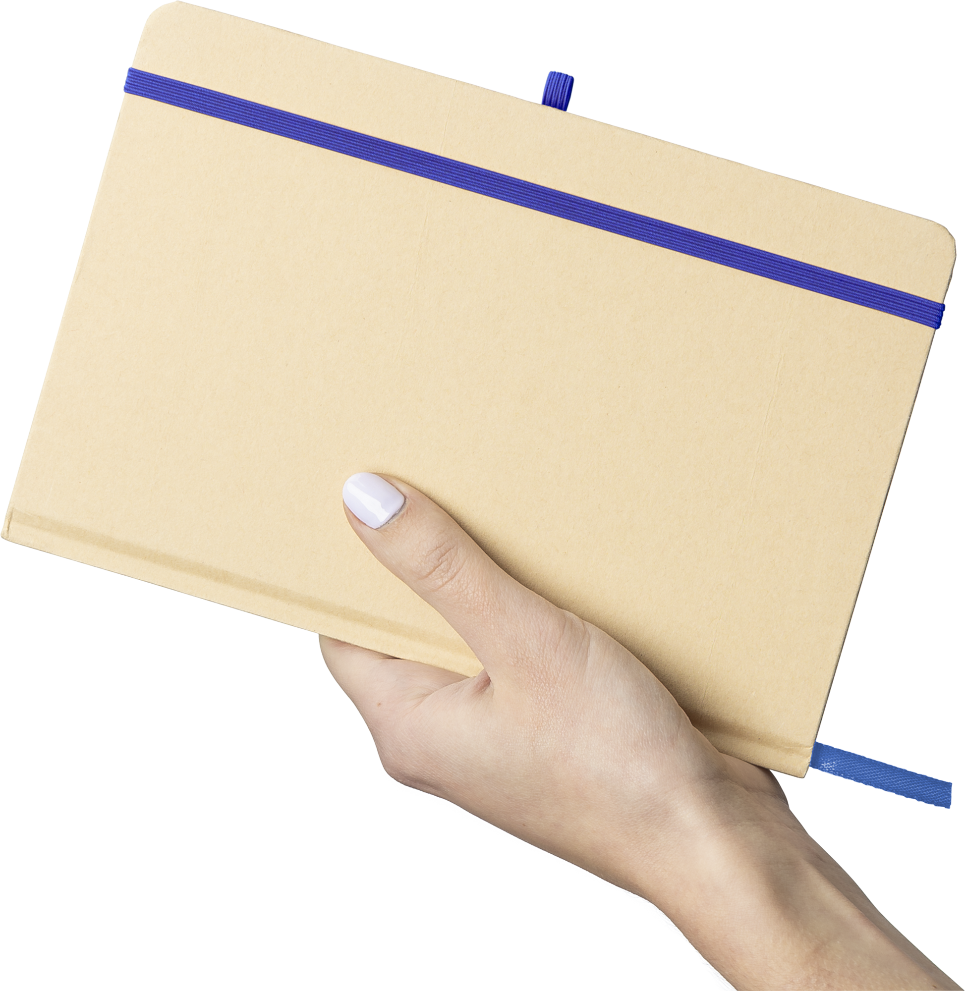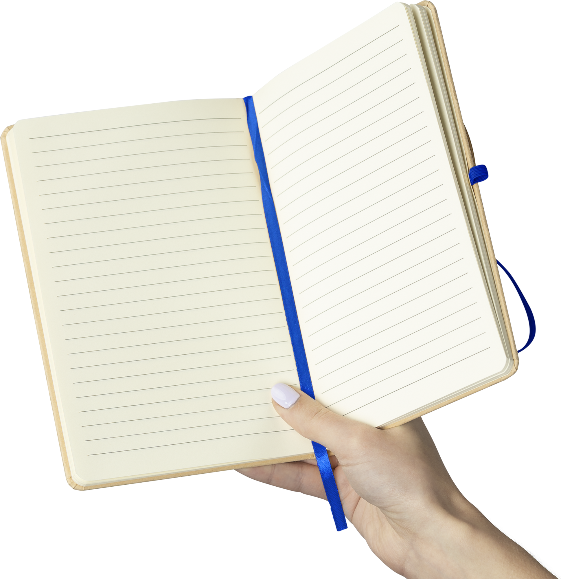 Notebook with kraft hard cover and aluminium film backing, designed to give a mirror effect after engraving. Contains 80 lined pages of 70 gsm paper for smooth writing. The paper in this notebook is FSC® Mix certified. Finished with matching colour elastic band, ribbon marker and pen loop.