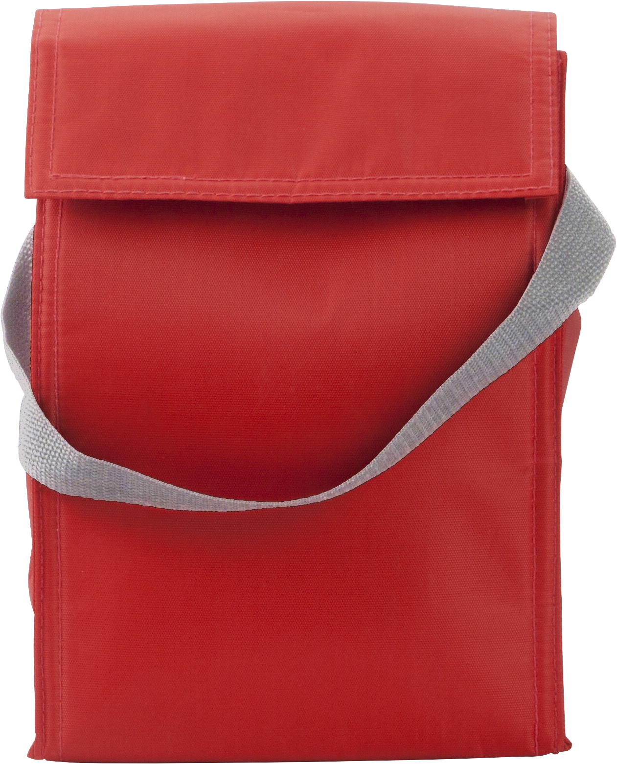 Polyester (420D) cooler/lunch bag with Velcro closing and carry strap.