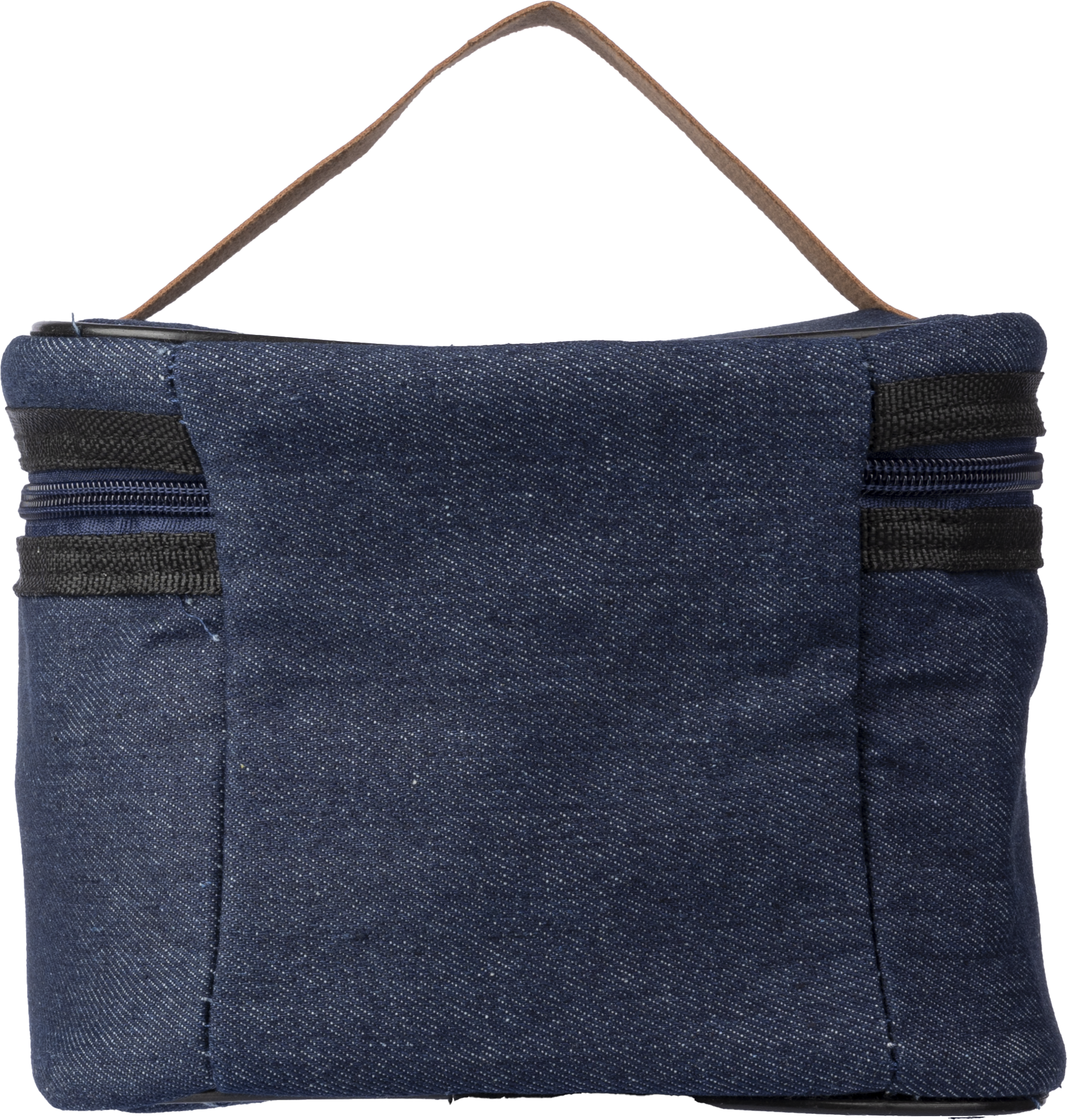 Denim cooler bag with PU details and PEVA cooling interior