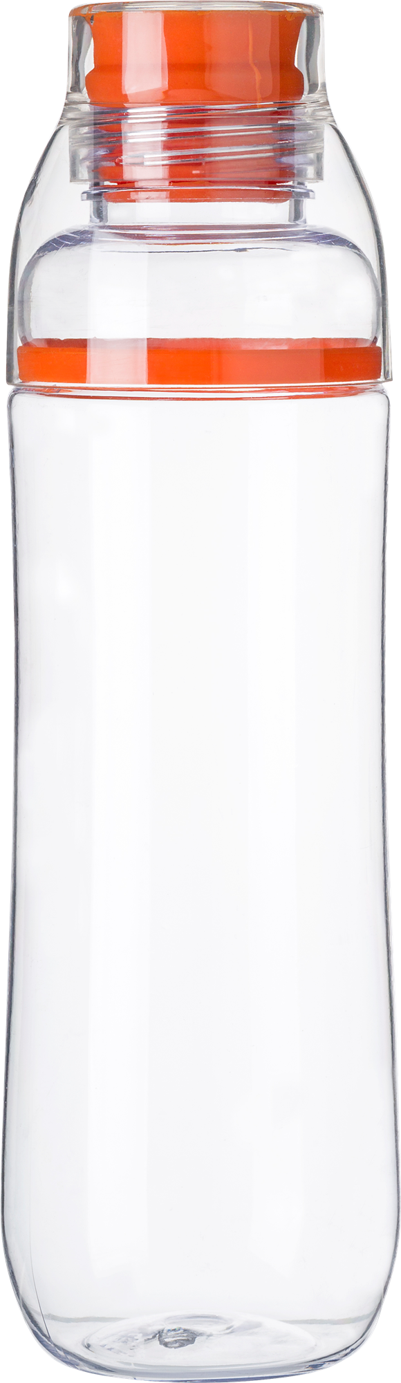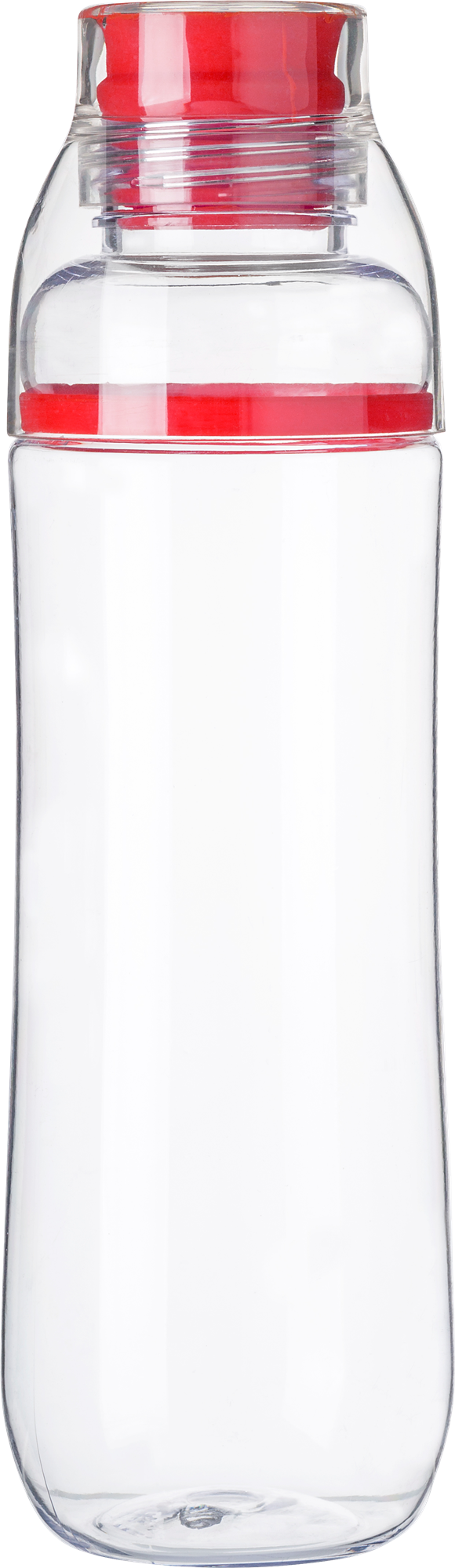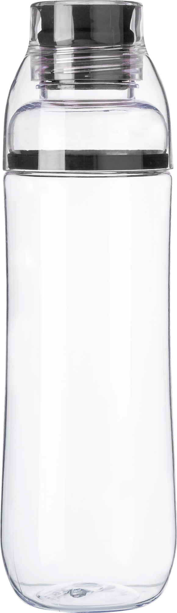 Plastic drinking bottle (750ml) with silicon lid and drinking cup.