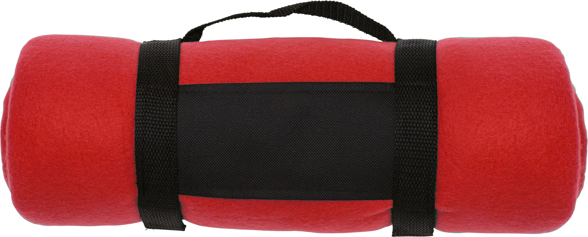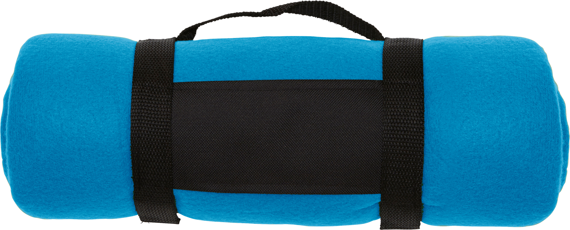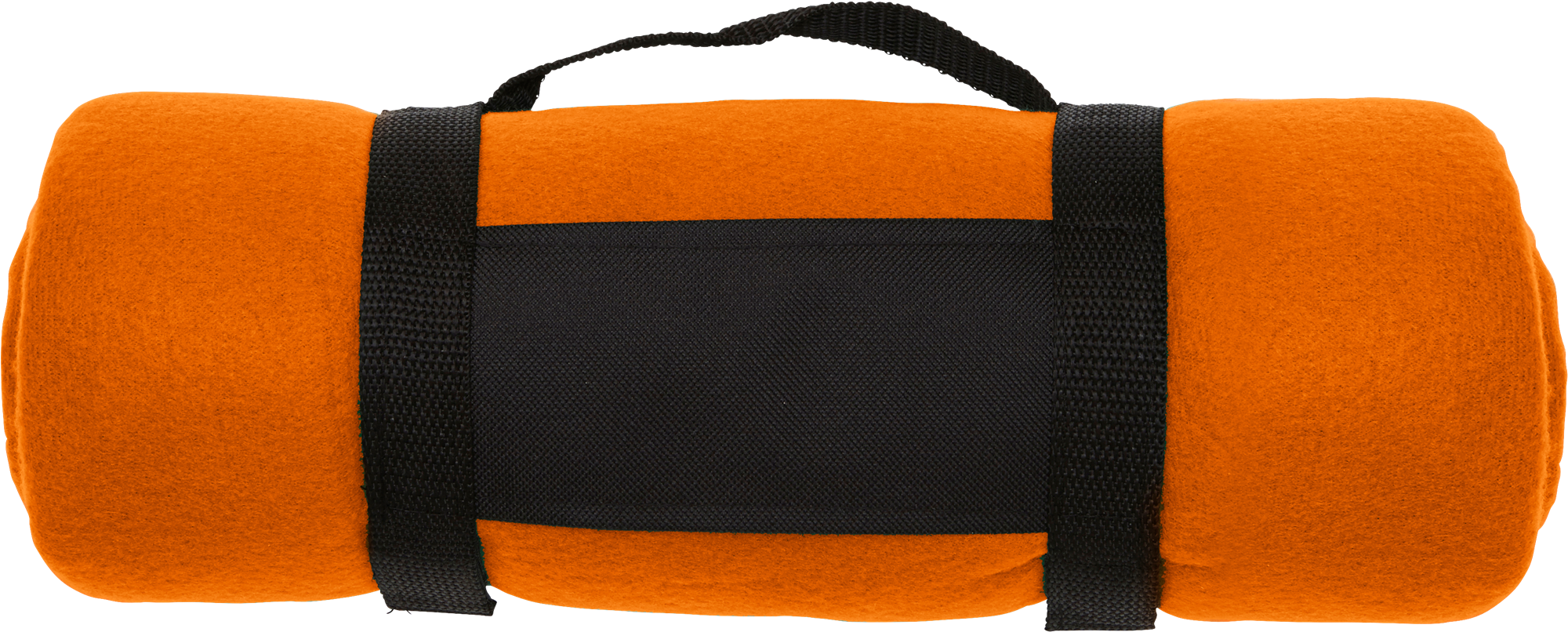 Polar fleece (170-180 gr/m2) blanket with a nylon carry strap. Unfolded size 160 x 125 cm.