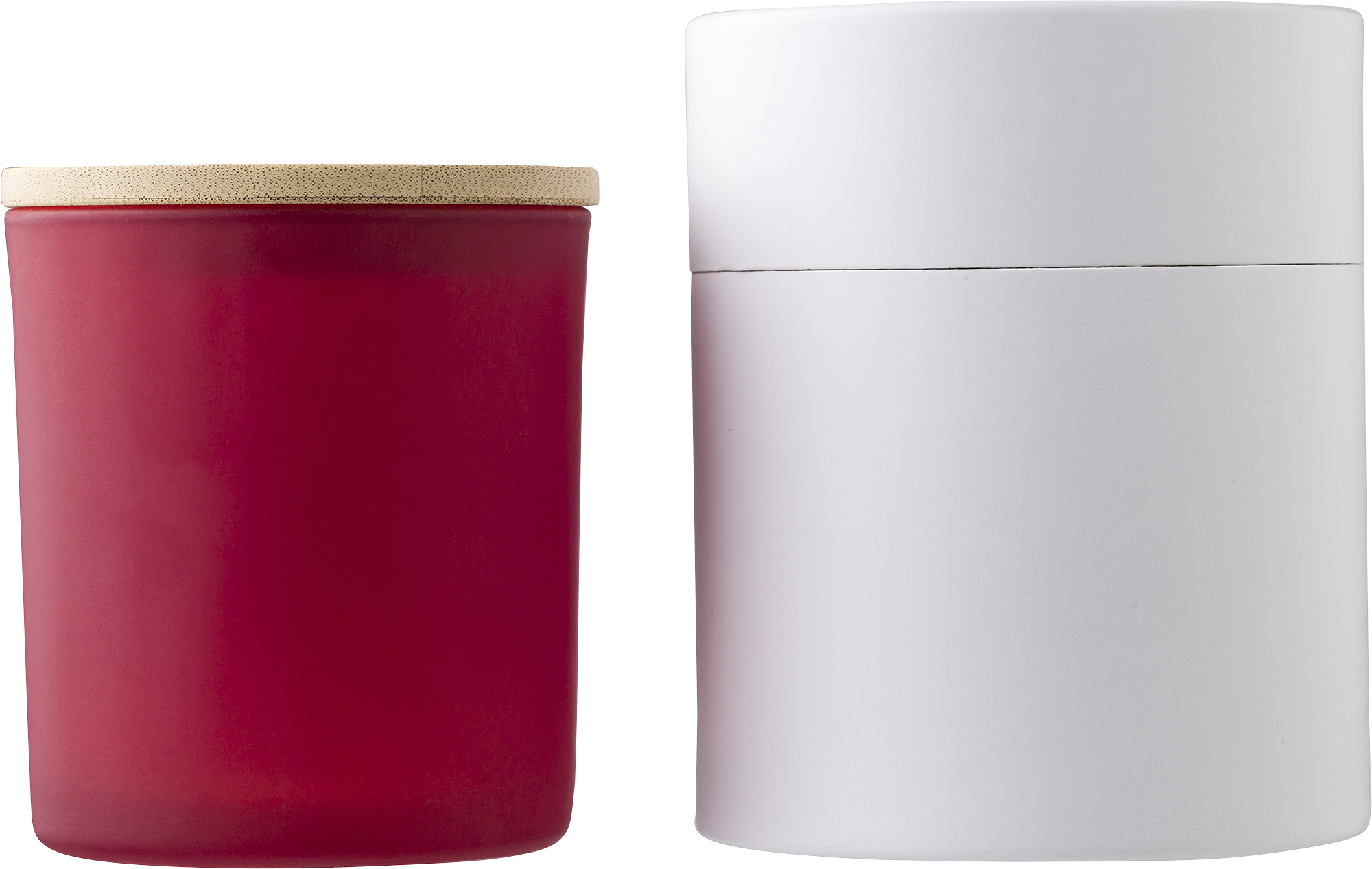 Glass candle with plant-based wax and bamboo lid - captivating scents for every glass colour: cinnamon (red), vanilla (white), sandalwood (black), and jasmine (green). Enjoy around 33 hours of burn time. Individually packed in a white tube for eco-friendly gifting. Illuminate your space sustainably and stylishly.