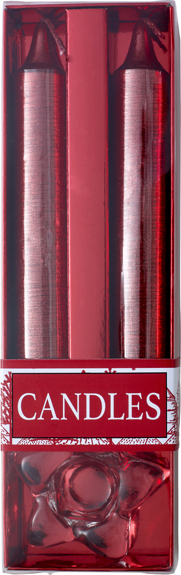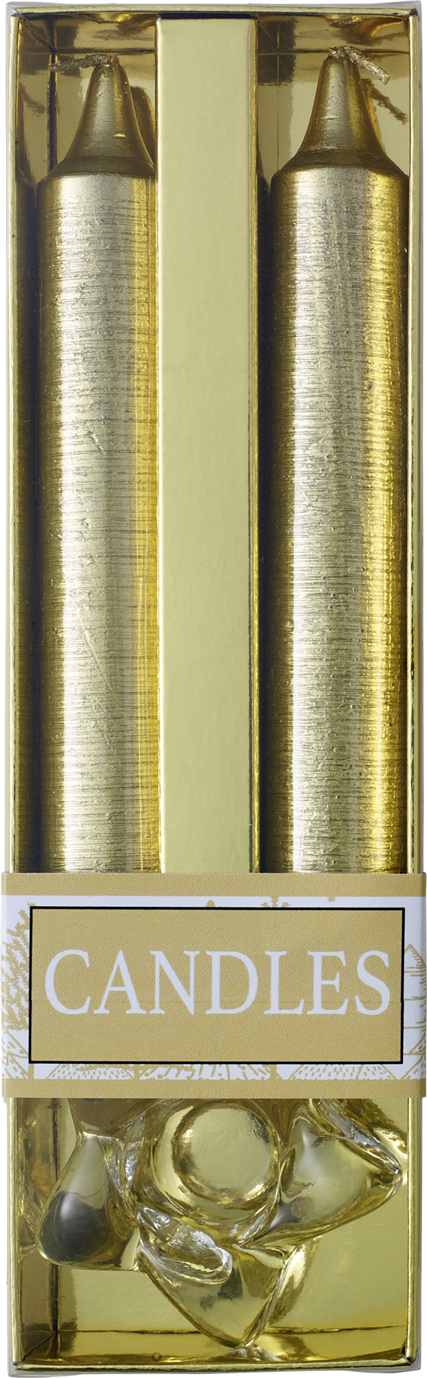 Pack of two glitter candles with a glass holder