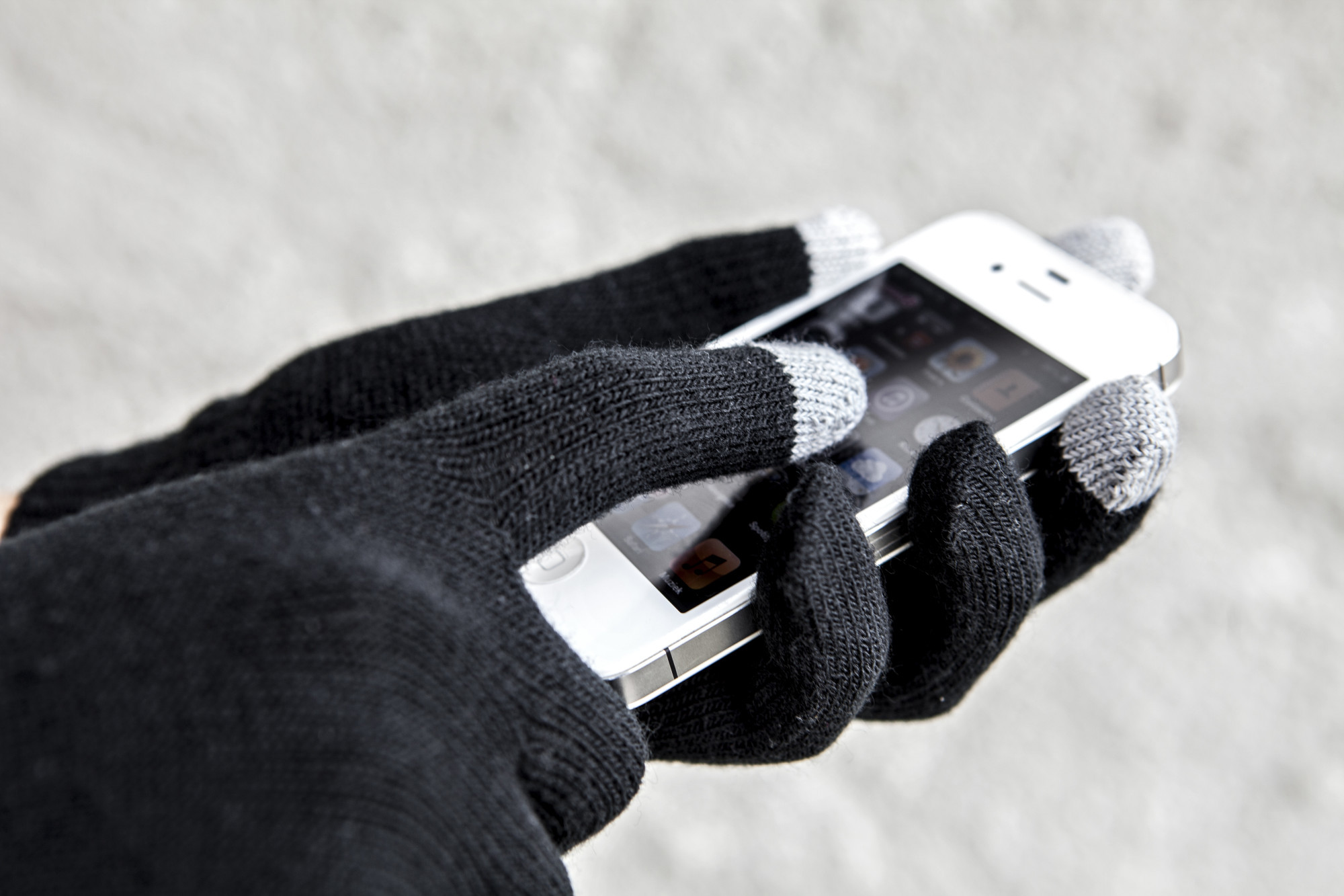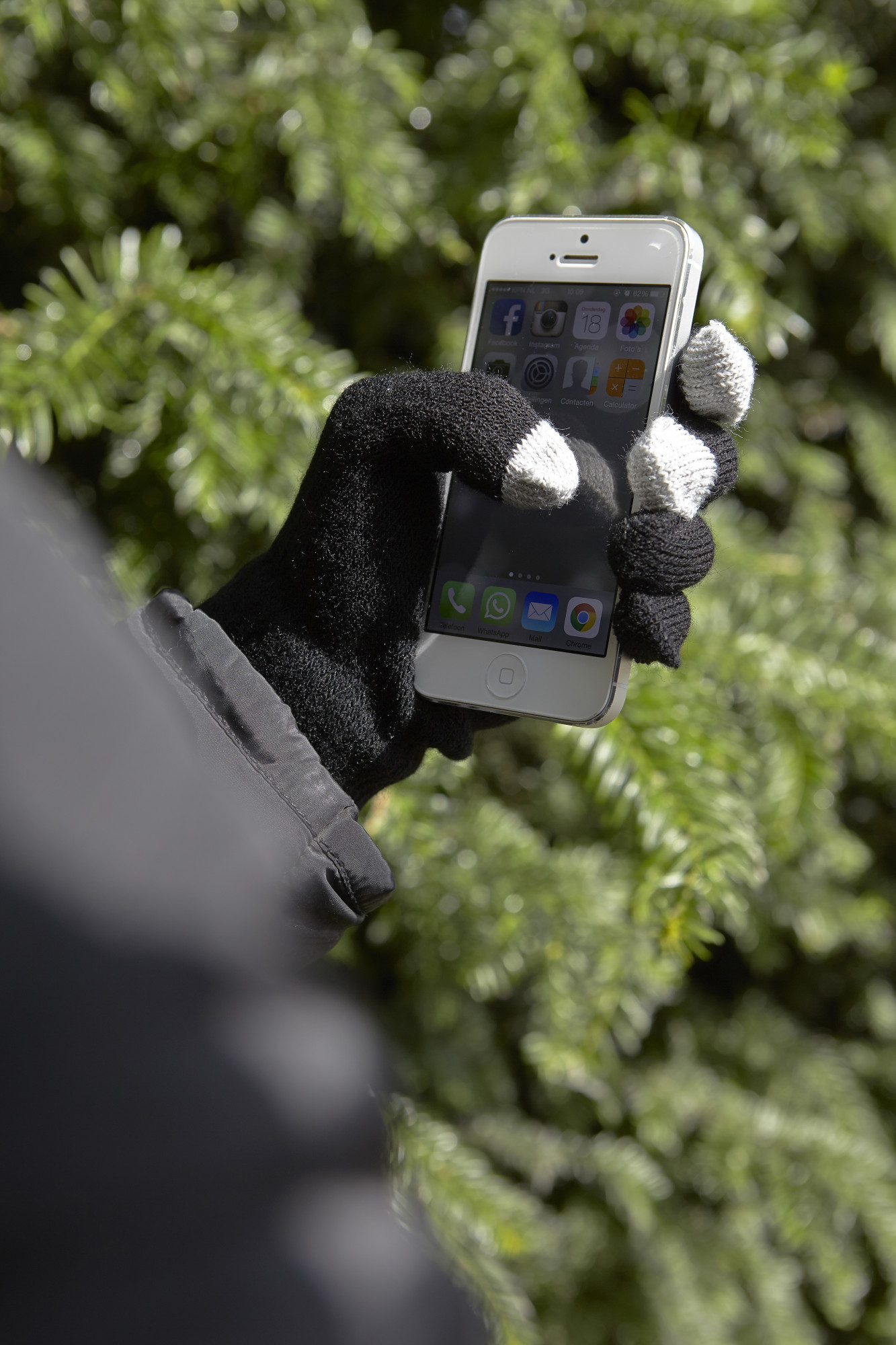 Pair of gloves with three tips (thumb, index finger and middle finger) suitable for capacitive screens.