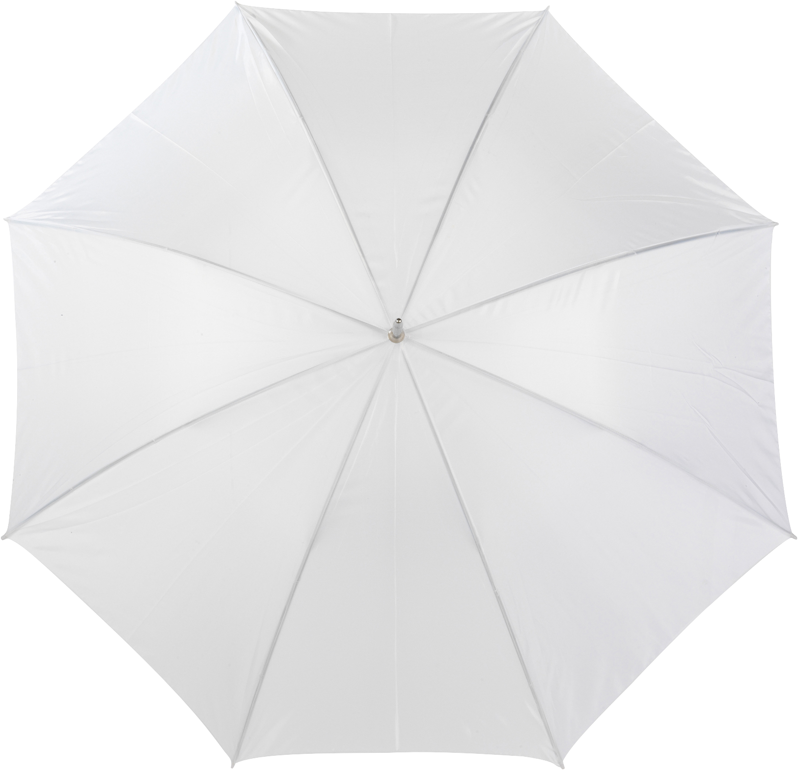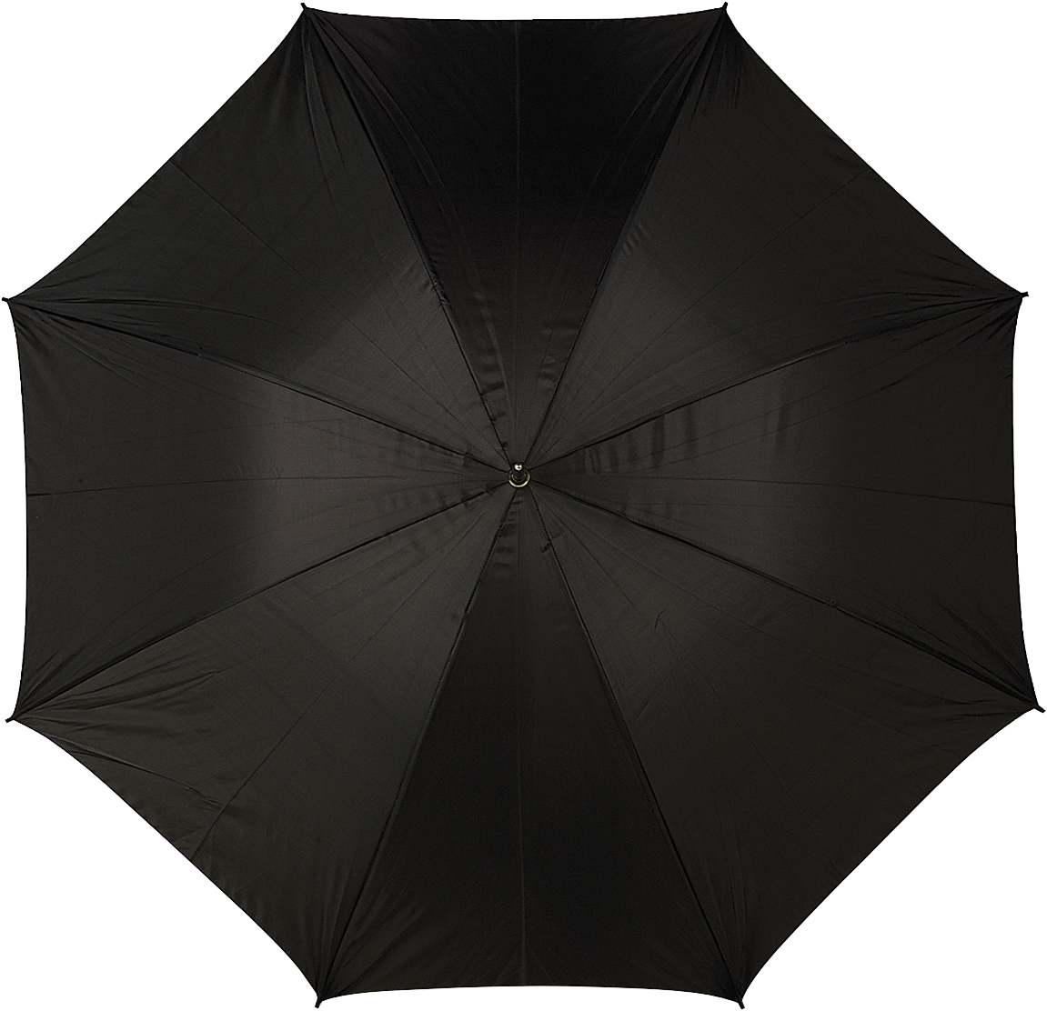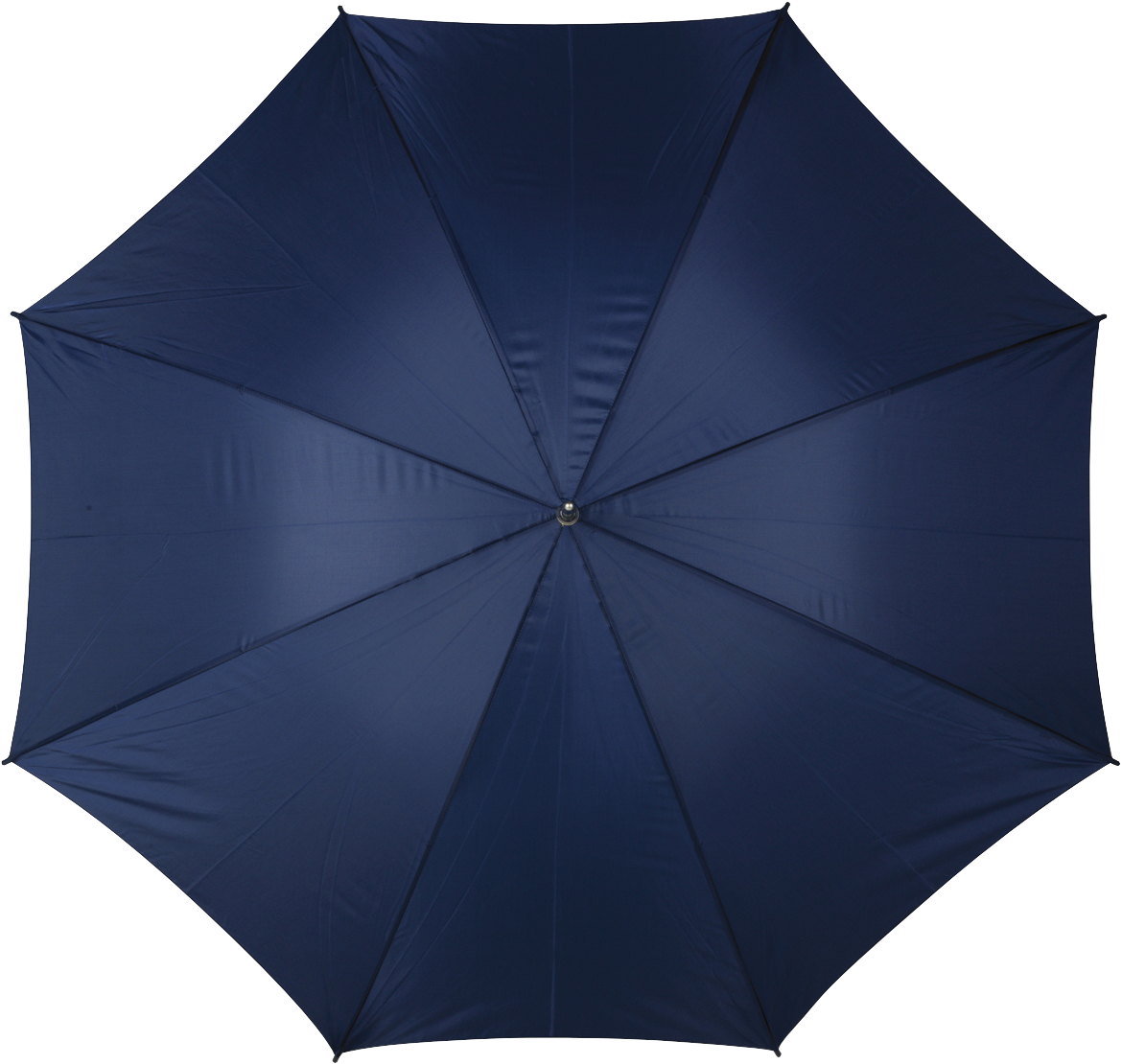Manual polyester (190T) golf umbrella with a metal shaft and wooden handle, with Velcro closing.