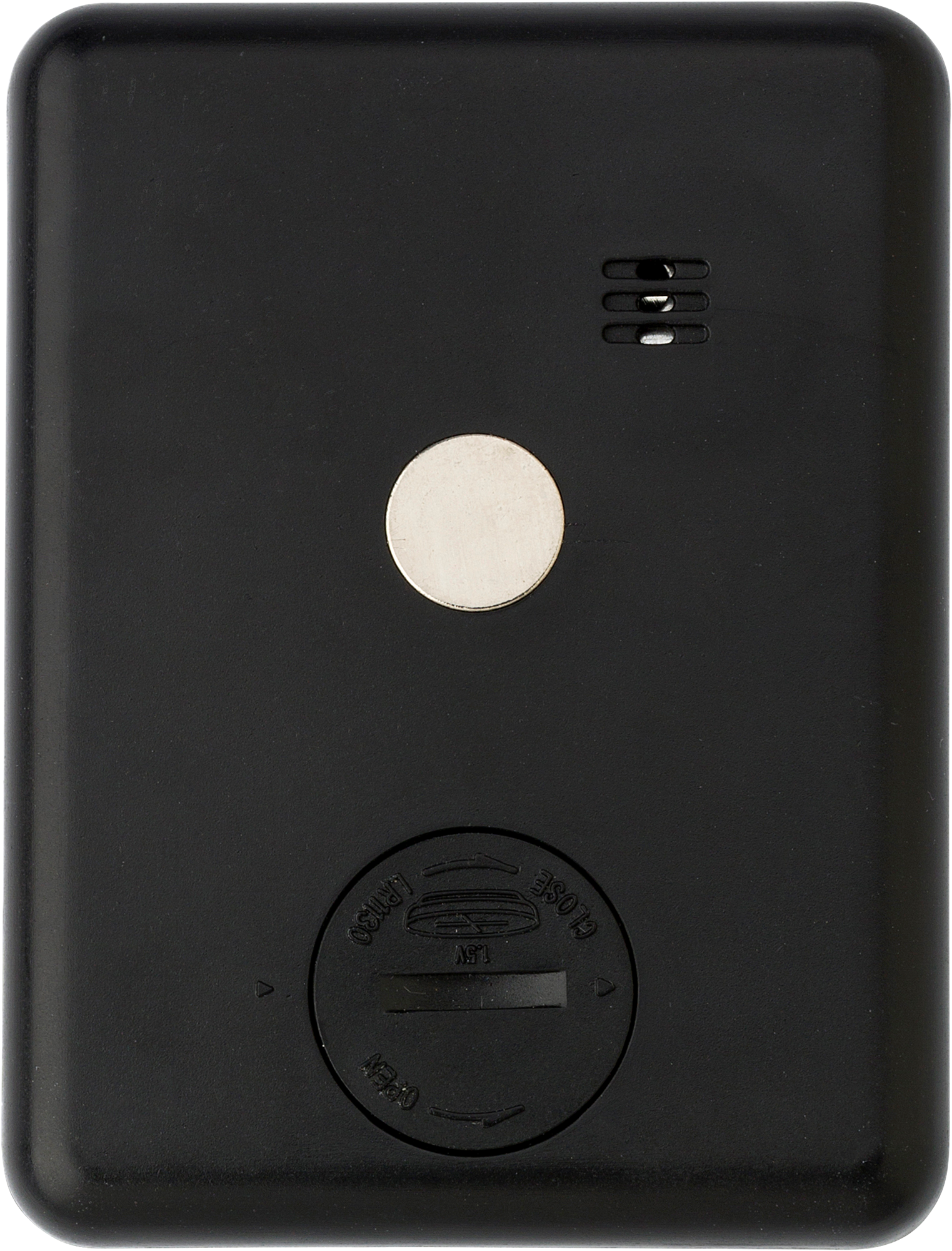 Kitchen timer with minute and second modes and magnetic back. Batteries included.