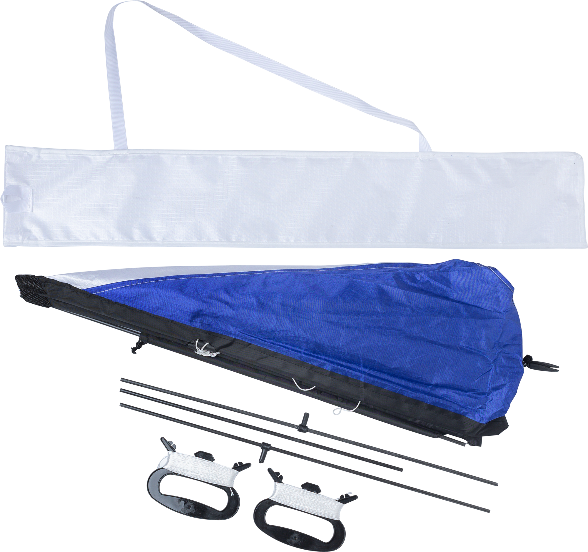 Polyester 210T ripstop delta kite, with a width of 160 cm. Packed individually in a pouch with an adjustable carrying strap.