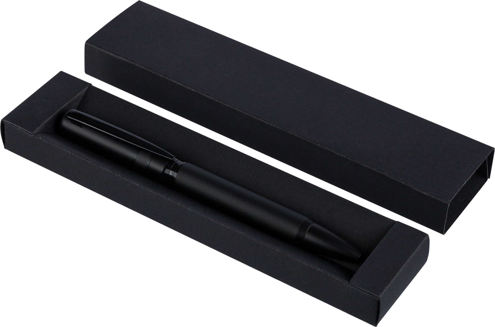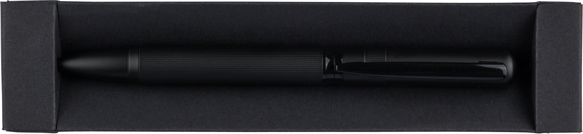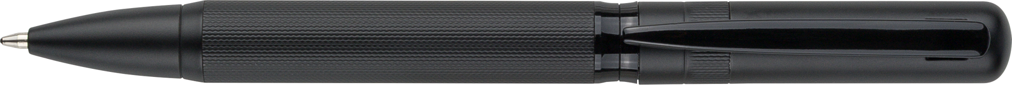 Stylish metal and eco brass twist action ballpen. Supplied with German Dokumental blue ink. Individually packaged in a black sliding box.