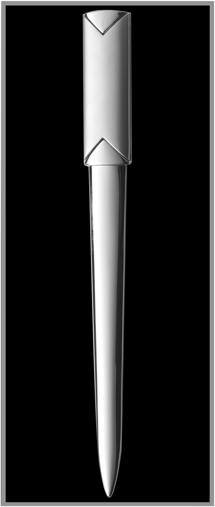 Metal letter opener, supplied in a black laminated presentation box.