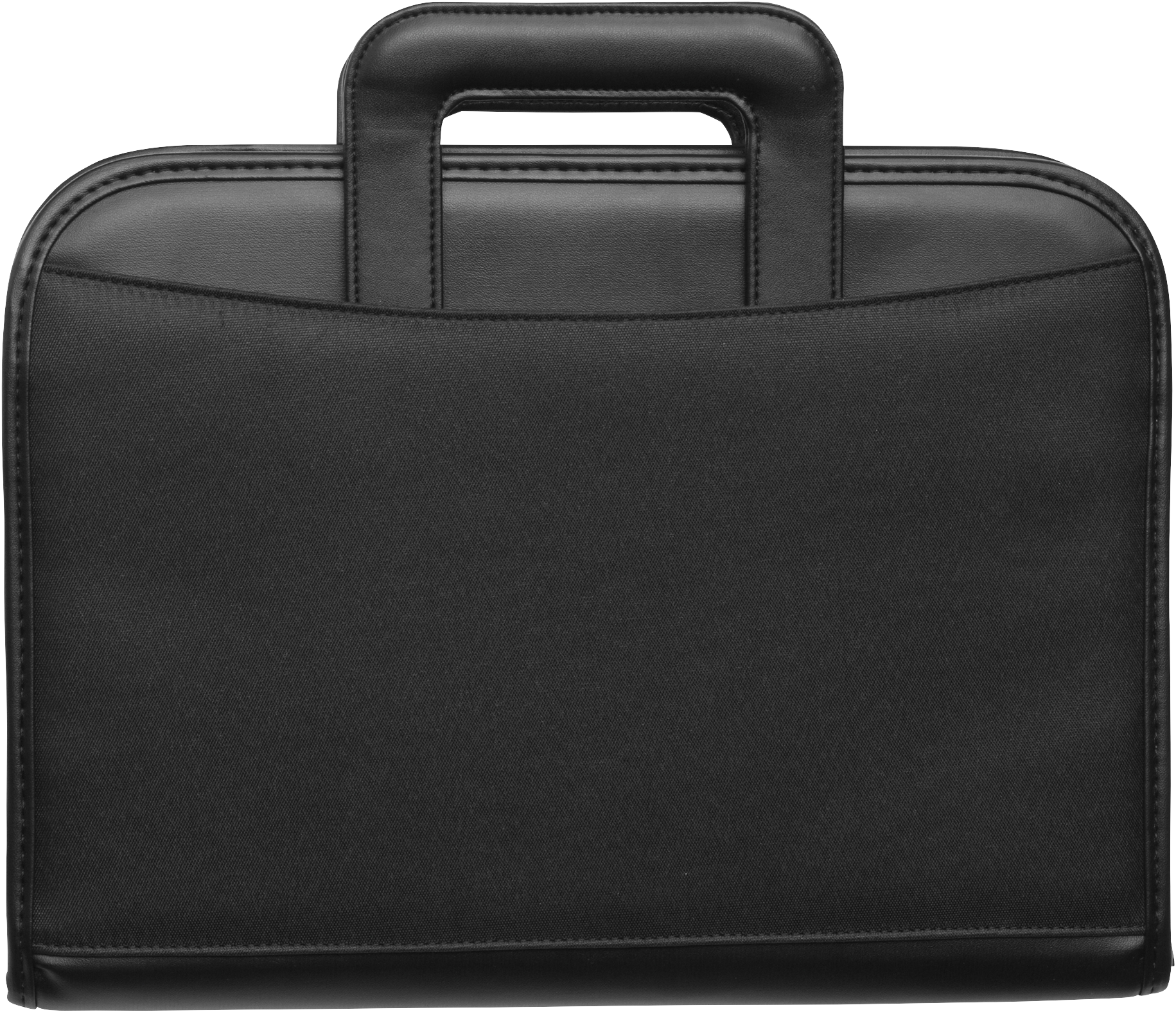 A4 Microfibre zipped folder with PVC edging and integrated handles which can be stowed away, zipped internal pocket, eight digit dual power calculator and twenty page note pad.