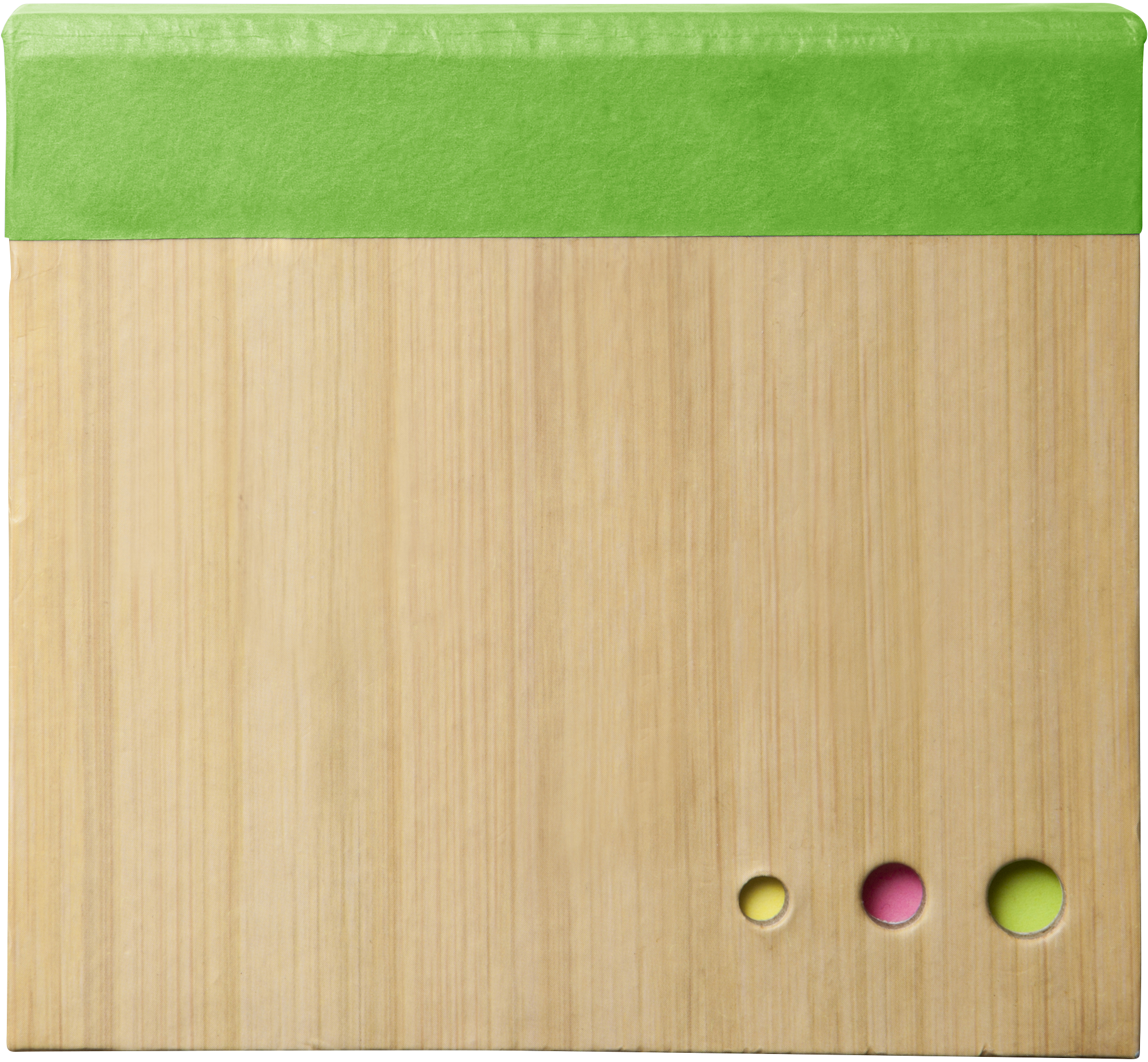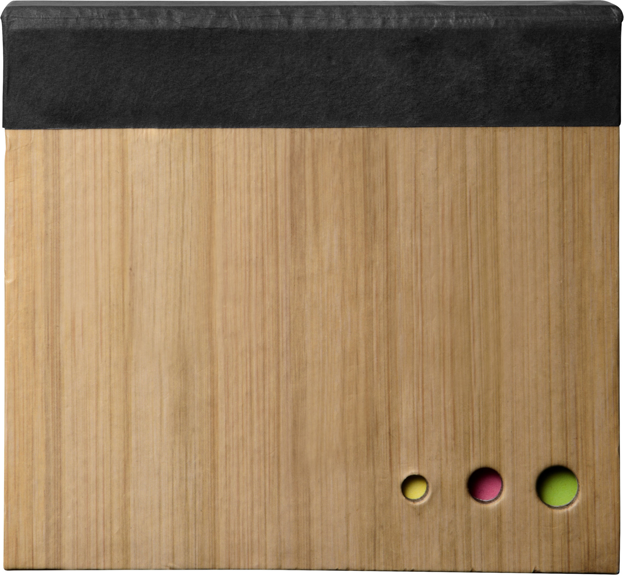 Paper bamboo-look note block with plastic trim, includes self-adhesive arrow-shaped labels and sticky notes, 150 sheets each.