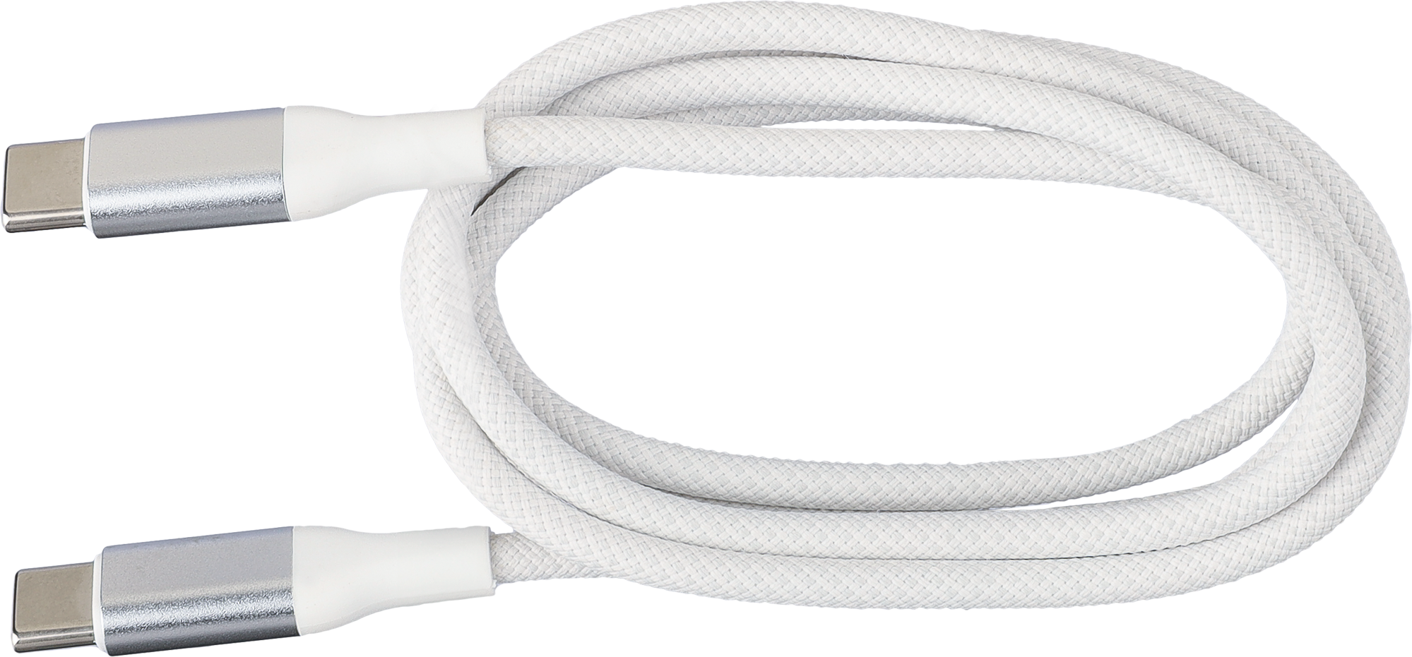 Type-C to Type-C data and charging cable with a length of 1 metre. Data transfer speed of 120 Mbps. Individually packaged in a brown cardboard gift box.