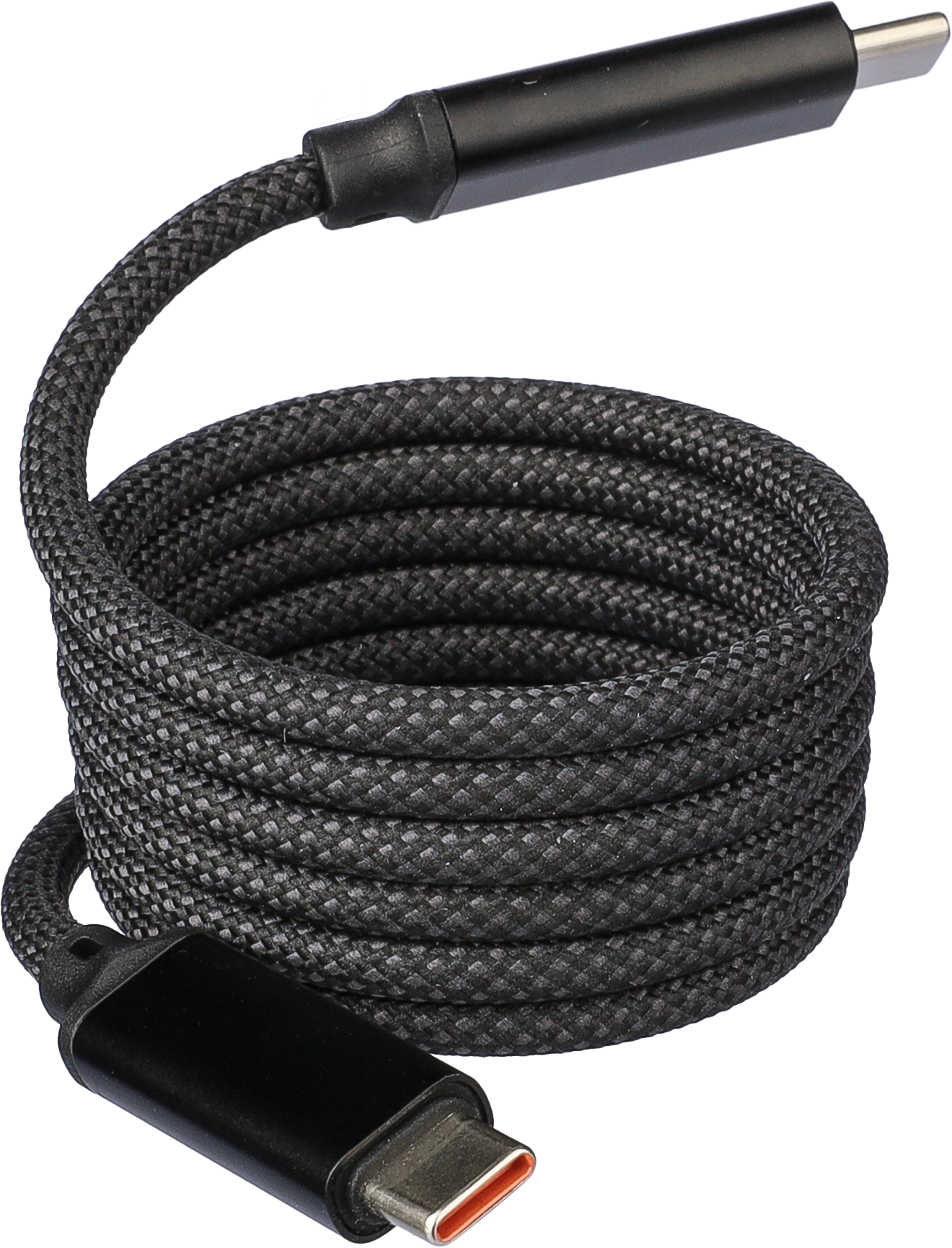 Type-C to Type-C data and charging cable with a length of 1 metre. Data speed of 240 Mbps. The built-in magnet allows the cable to roll up automatically in a structured way. 240 Mbps data speed / 60W charging output. Individually packaged in a brown cardboard gift box.