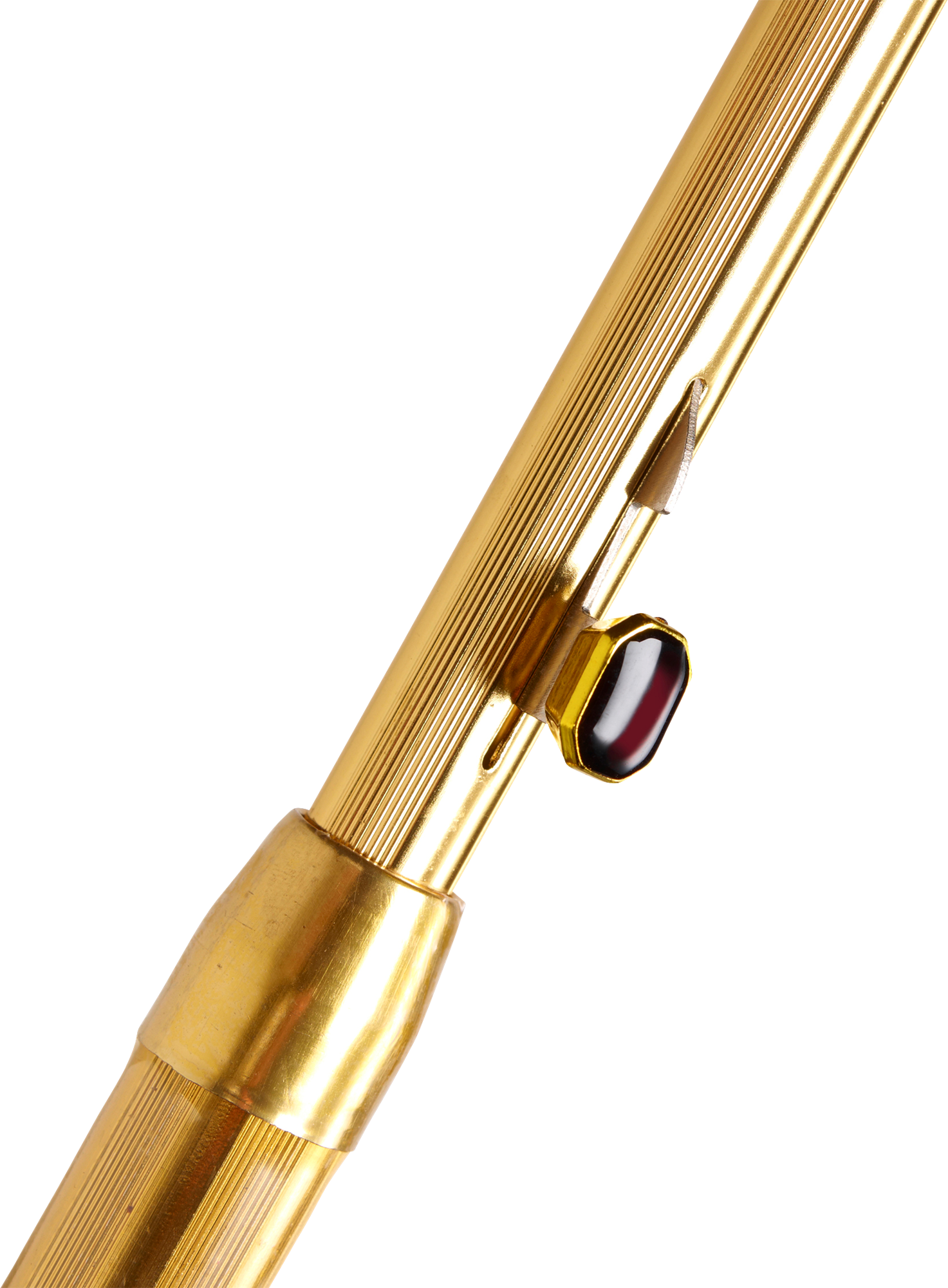 Automatic pongee (190T) umbrella with eight panels and an aluminium shaft and crook handle.