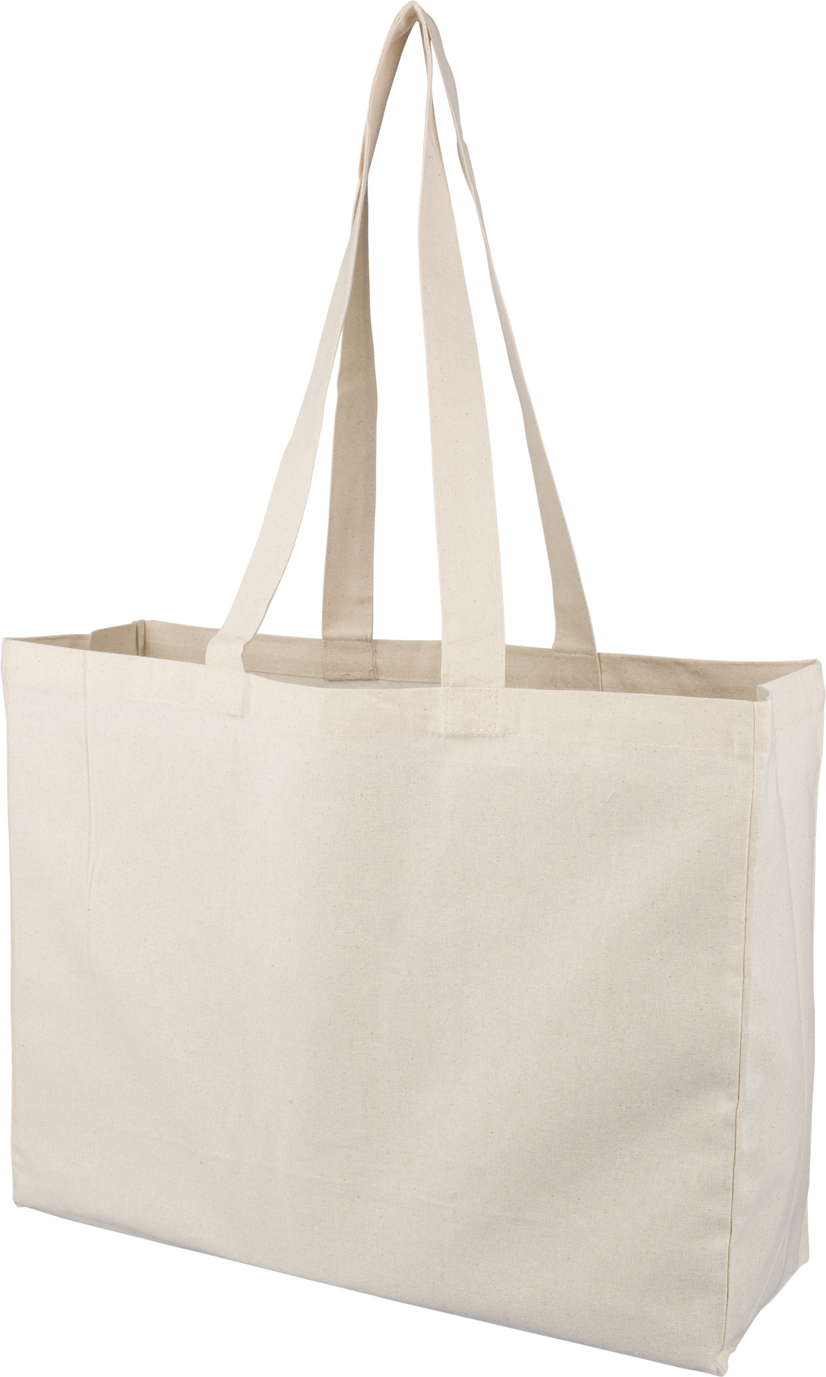Oeko-Tex cotton (180 gsm) shopping bag with long handles and a 13cm gusset. Includes Oeko-Tex label.