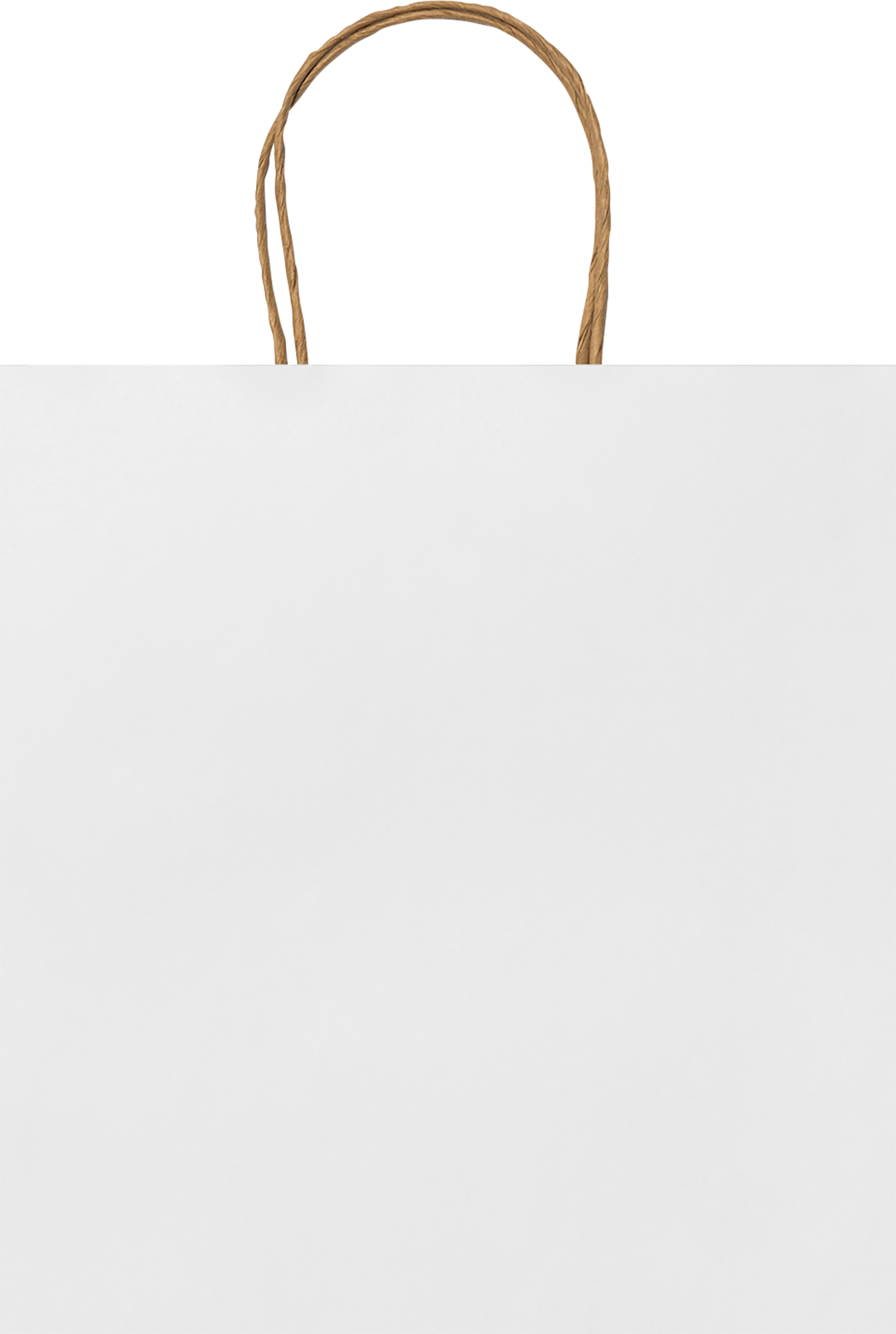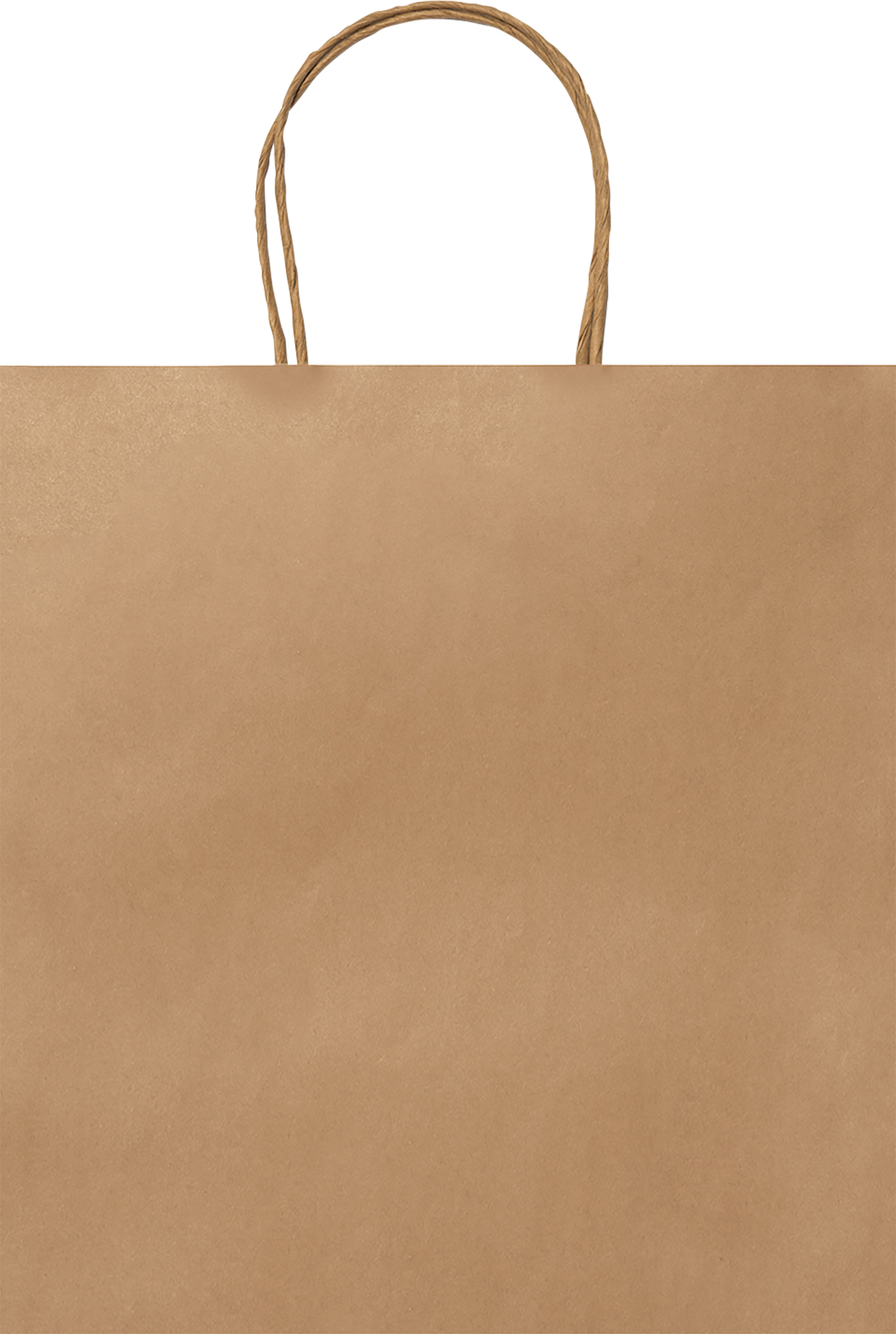 Paper bag in natural finish, with reinforced short handles in a twisted design. 110gsm