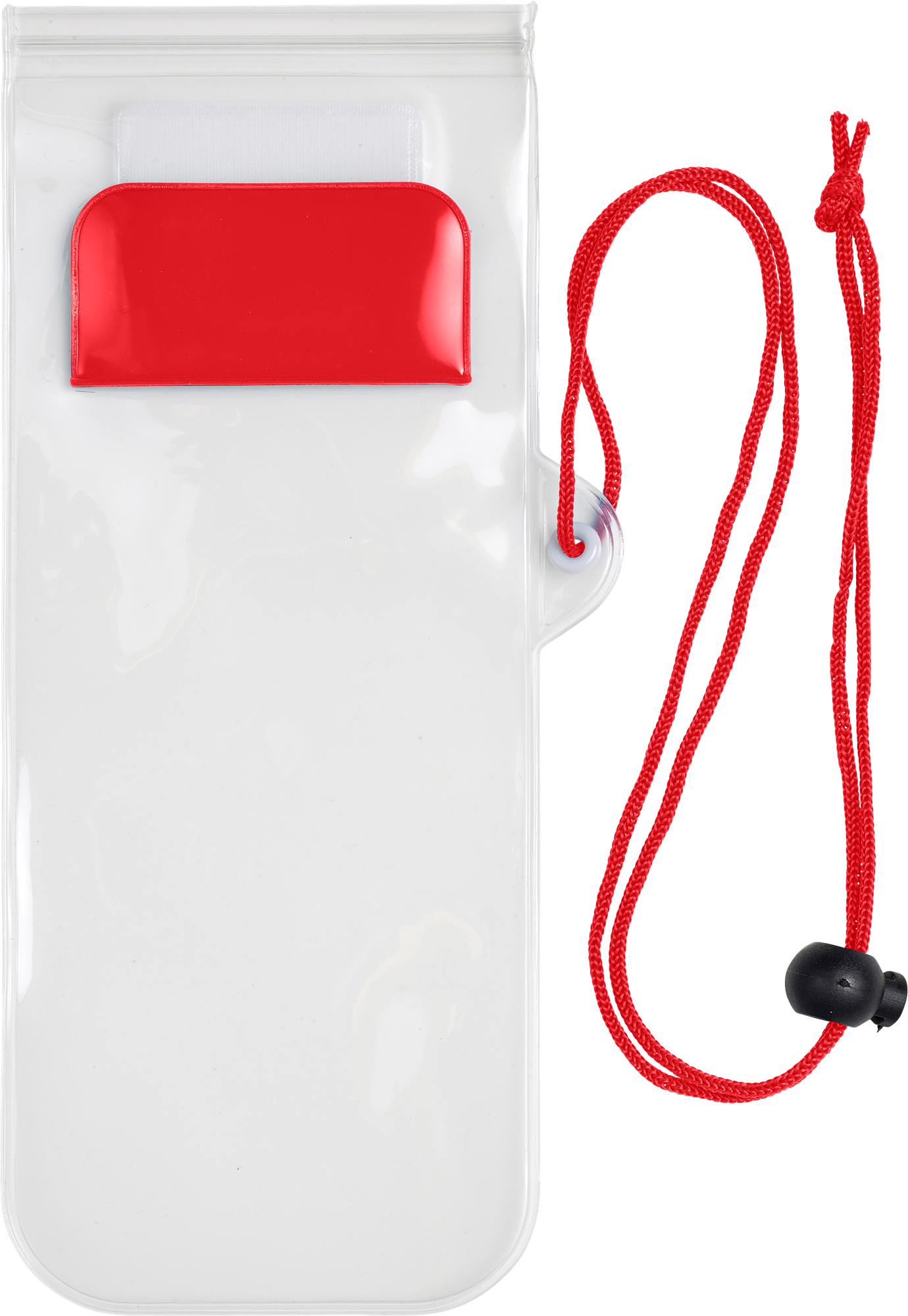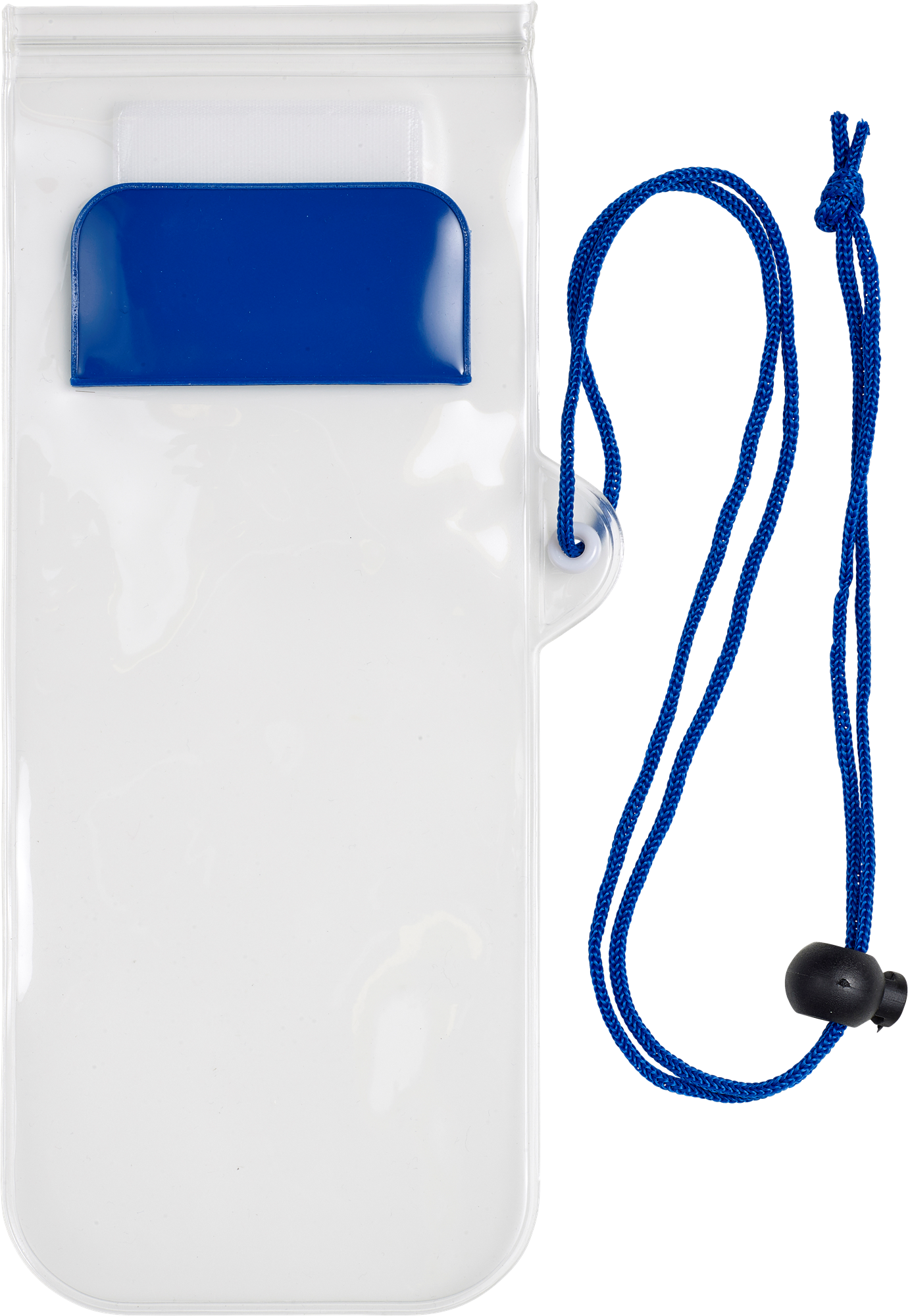 Plastic water-resistant protective pouch for mobile devices, including cord (with safety closure), approximately 94 cm long. You can operate the screen of your phone as normal thanks to the special material of the cover.