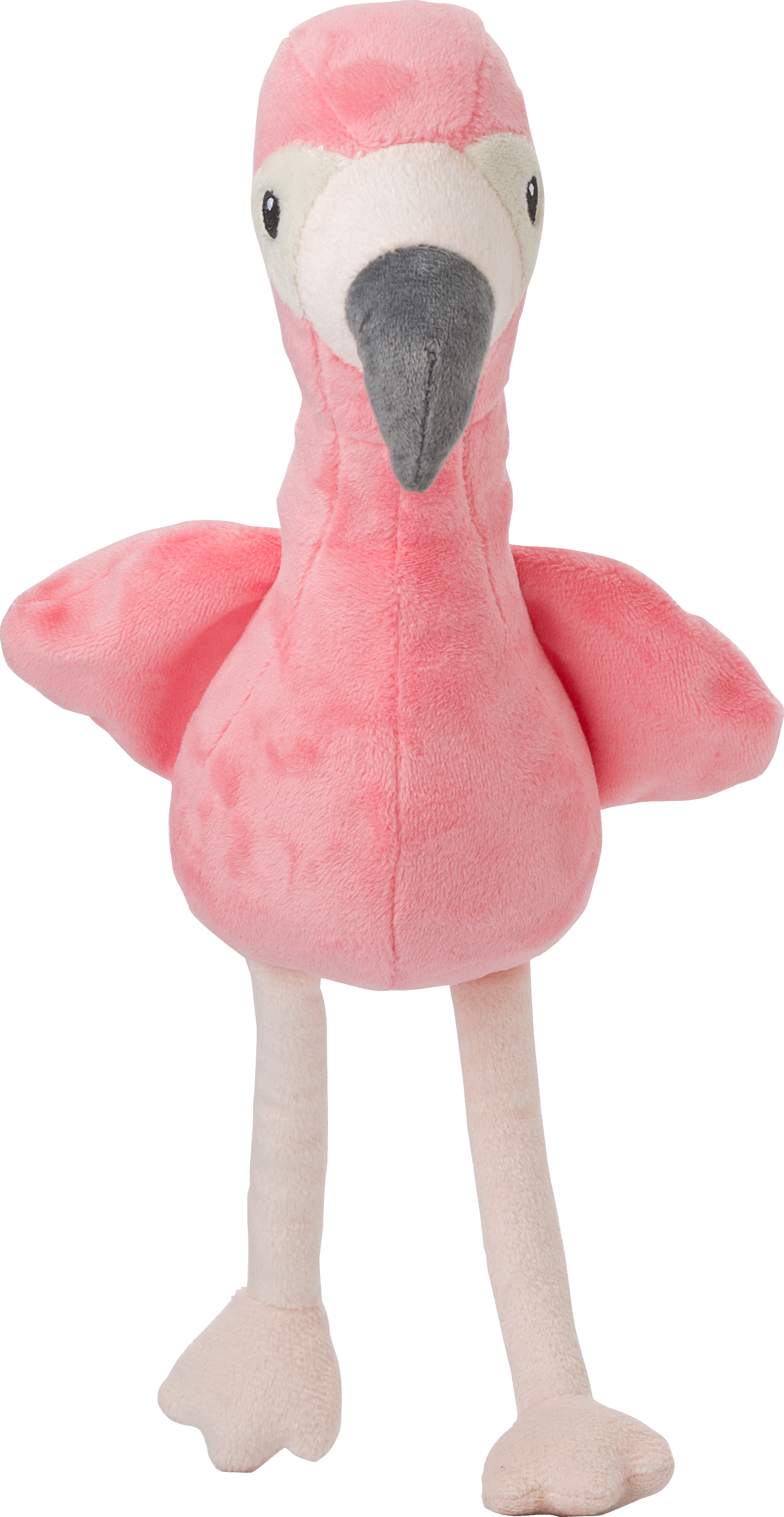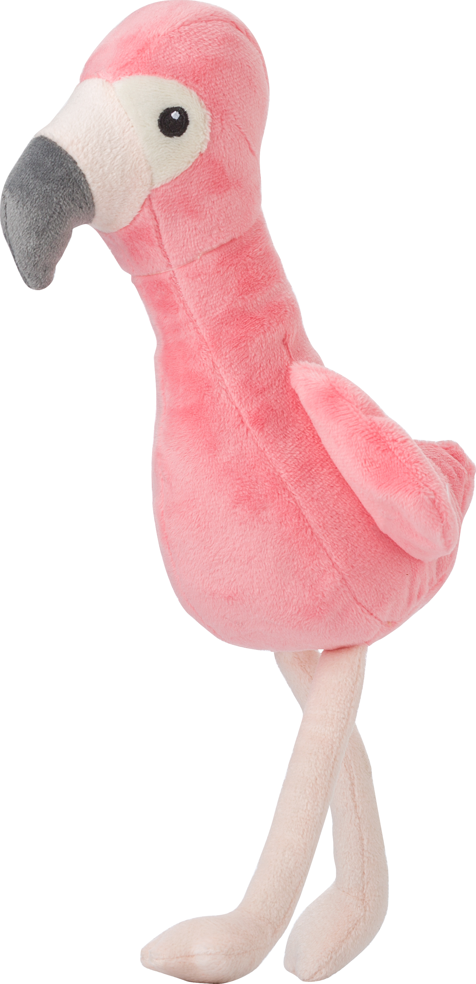 Flamingo with embroidered eyes. Includes an ear tag for personalisation.