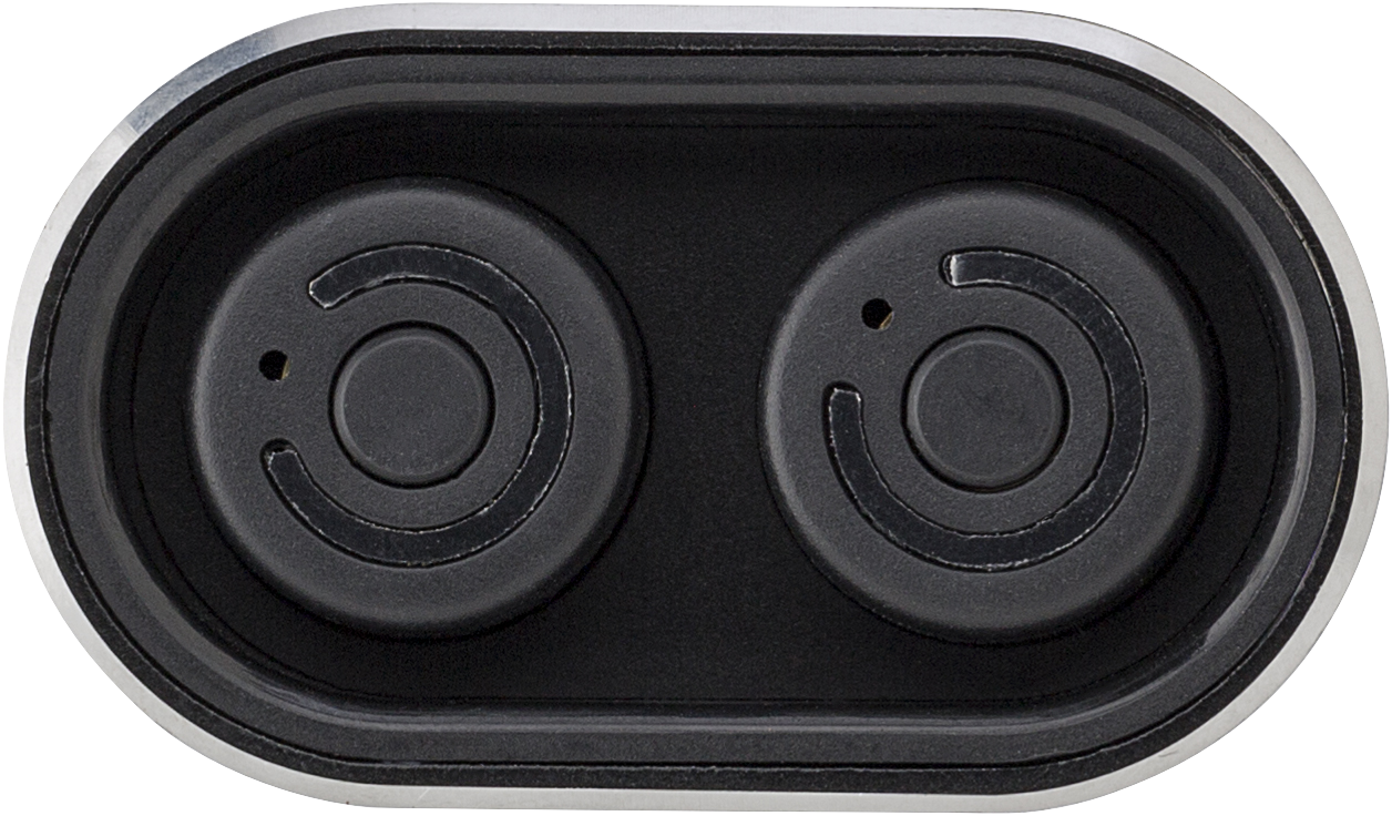 Power bank with two wireless earbuds. The Li-ion battery has a 4000 mAh capacity. Input 5V/0.9A (micro USB), output 5V/1A (USB). Including charging cable (USB - micro USB).