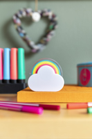 This Cloud-Shaped Memo Tape Dispenser has been made to brighten up the workspace. This playful and practical dispenser holds memo tapes in blue, green, yellow, orange, and pink, each measuring 1 meter. Perfect for organising notes, marking pages, or adding a splash of colour to projects, this dispenser is a mix of functionality and fun.