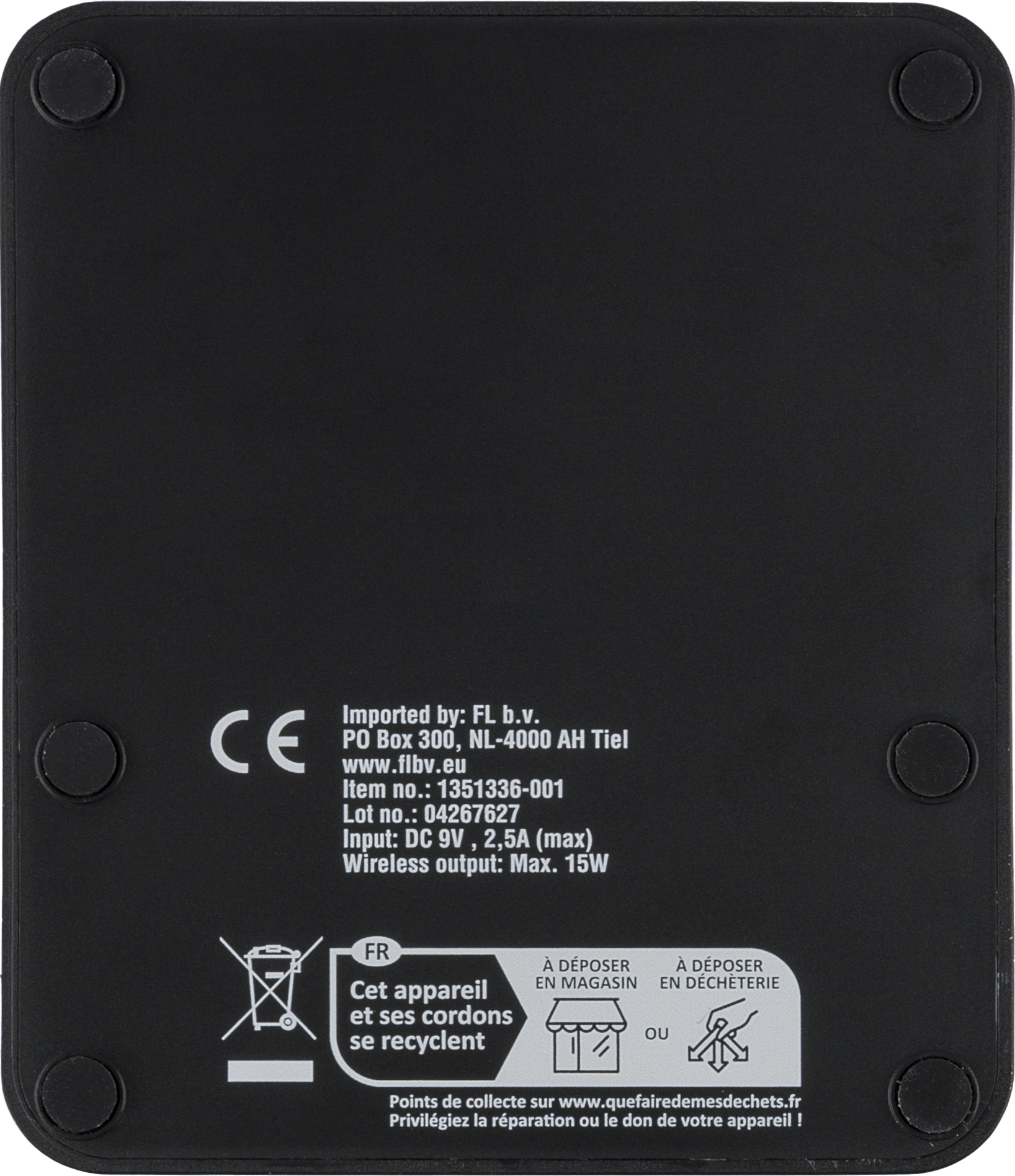 Recycled wireless 15W charger with a 5W speaker and phone holder. Features wireless tech 5.4 and a 1200 mAh battery, Packed in brown box.