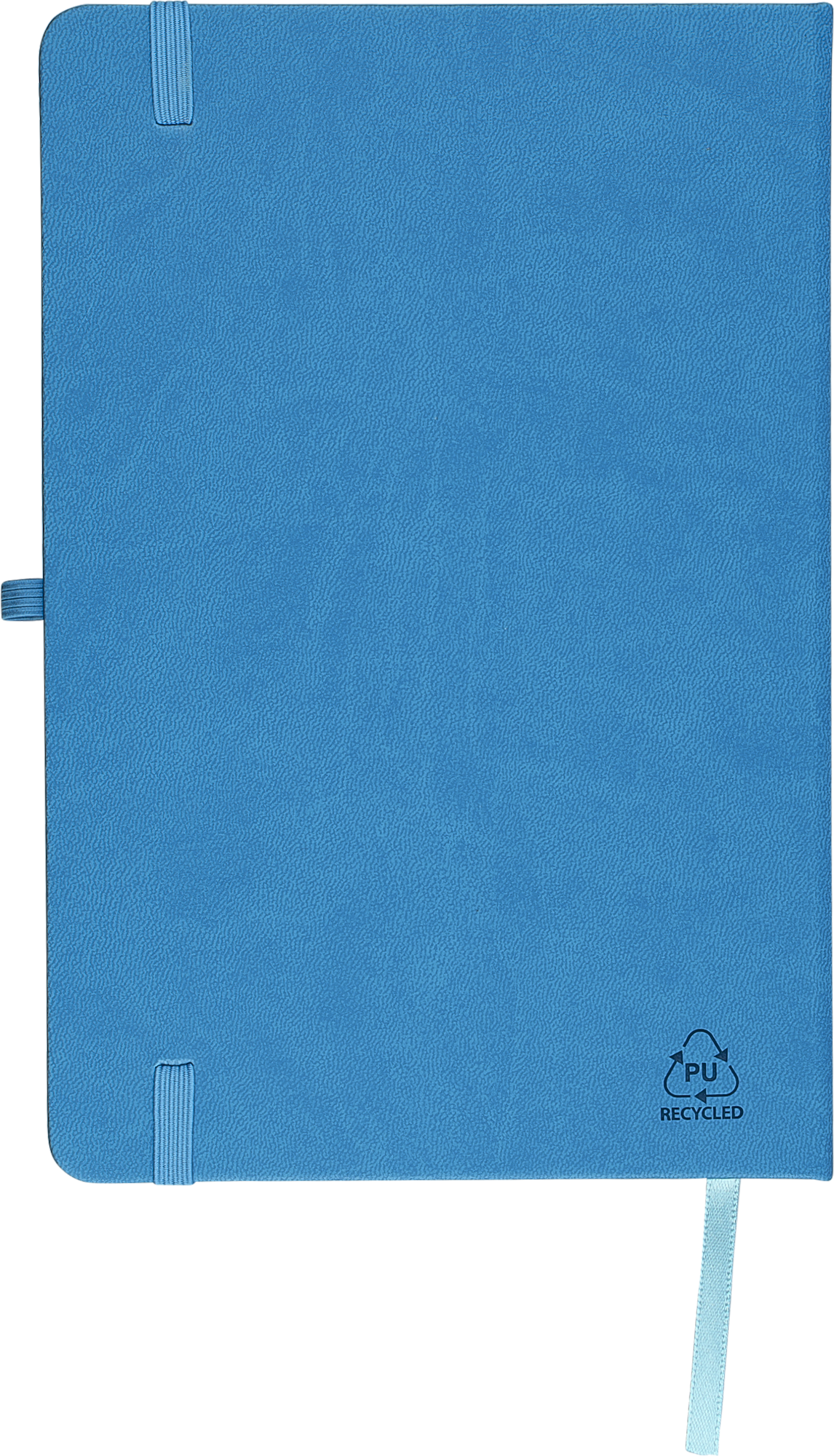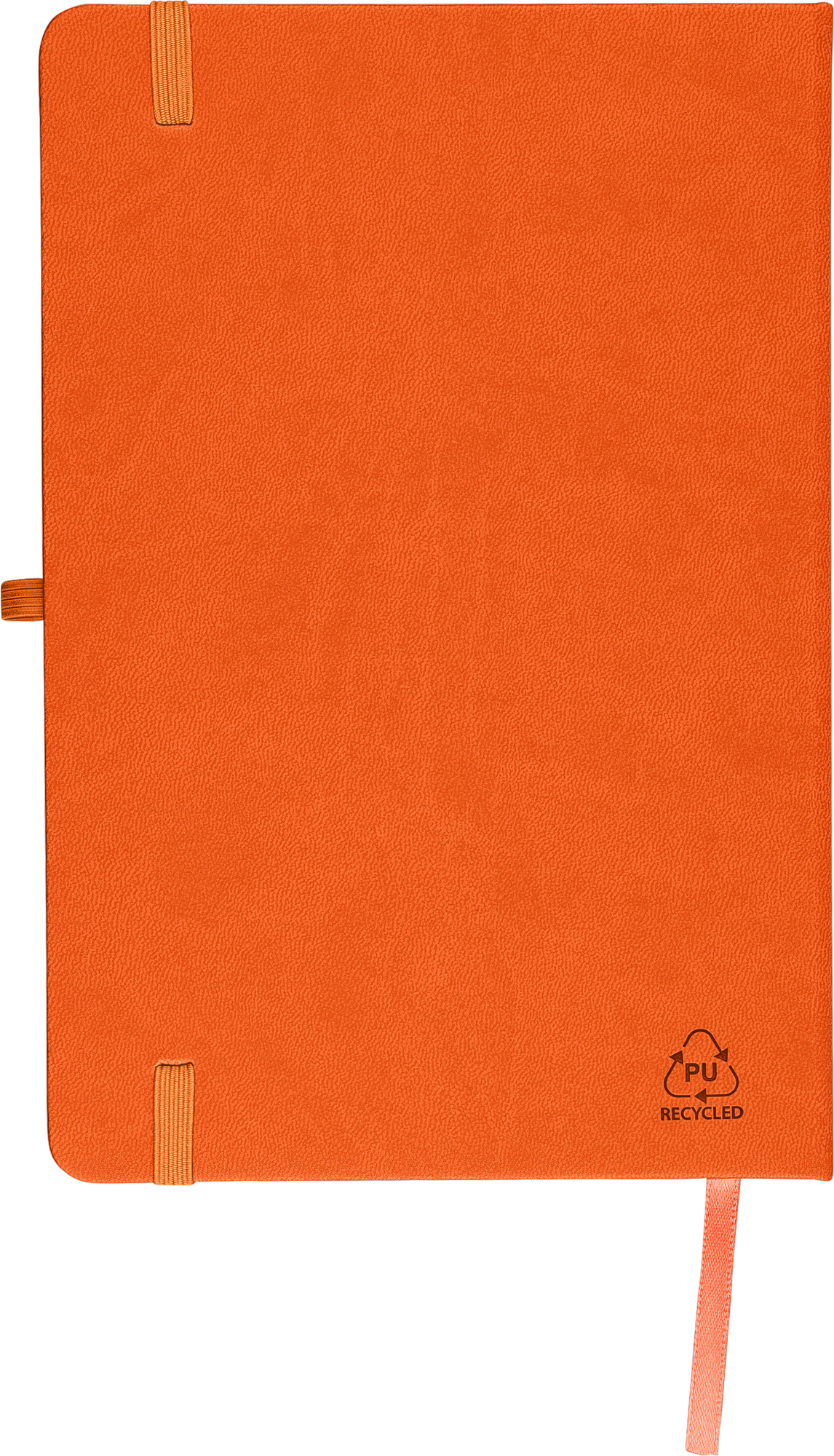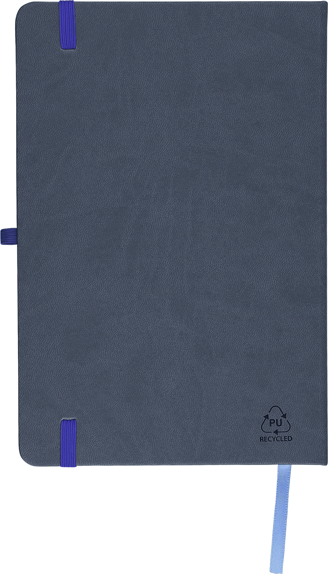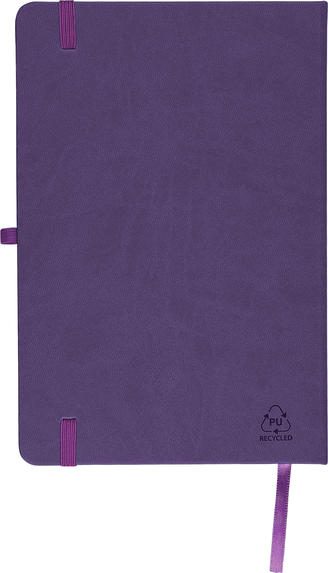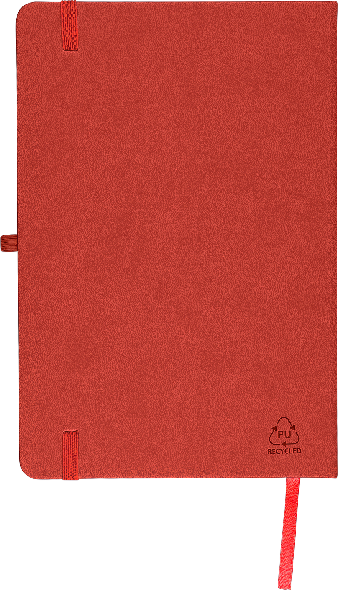 Notebook with a recycled hard cover and an embossed recycled logo on the back. The cover is suitable for laser engraving, revealing a subtle tone-on-tone colour effect. Includes 80 lined pages of 70 gsm paper, with matching coloured elastic band, ribbon marker, and pen loop. The paper in this notebook is FSC® Mix certified.