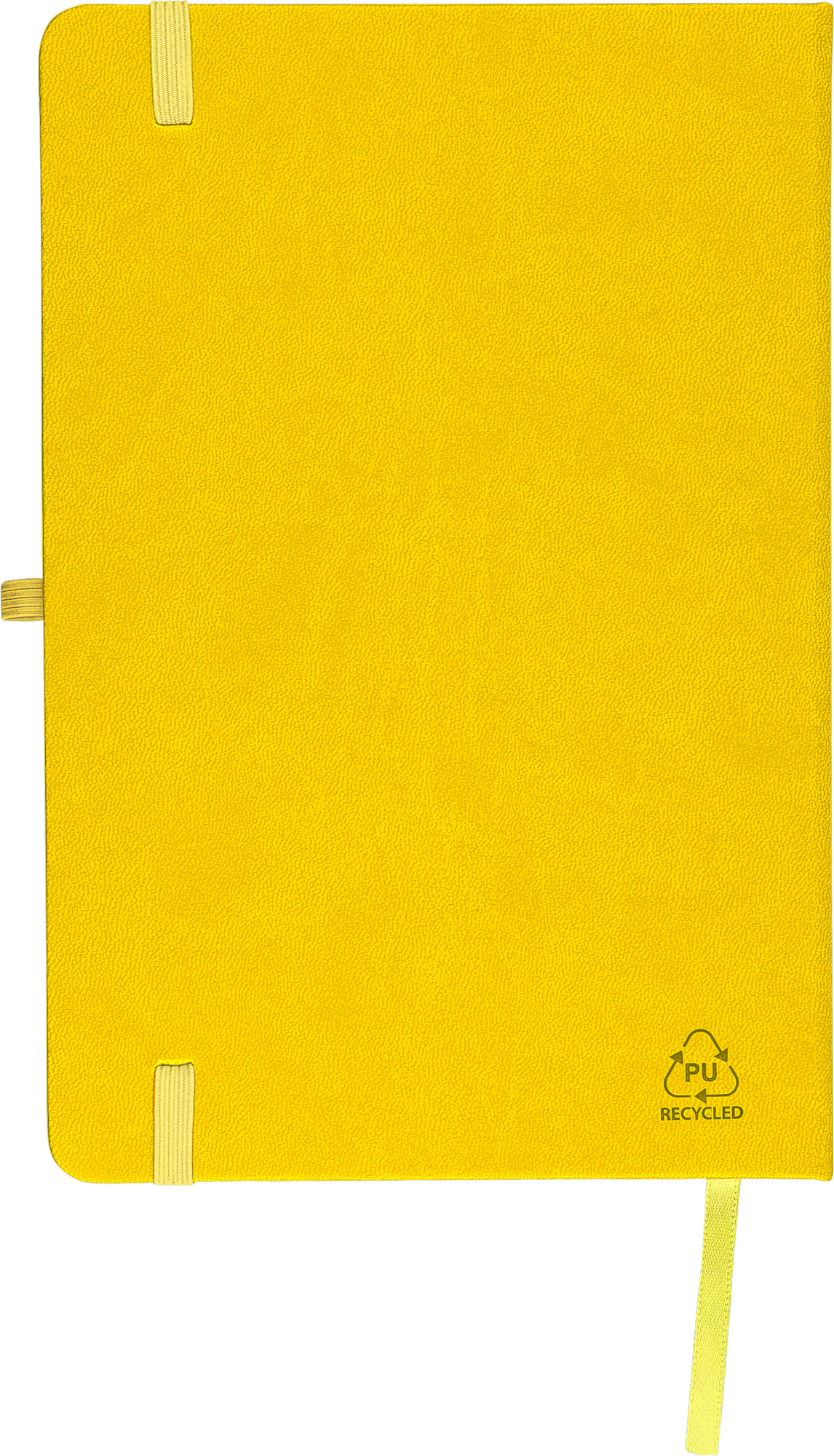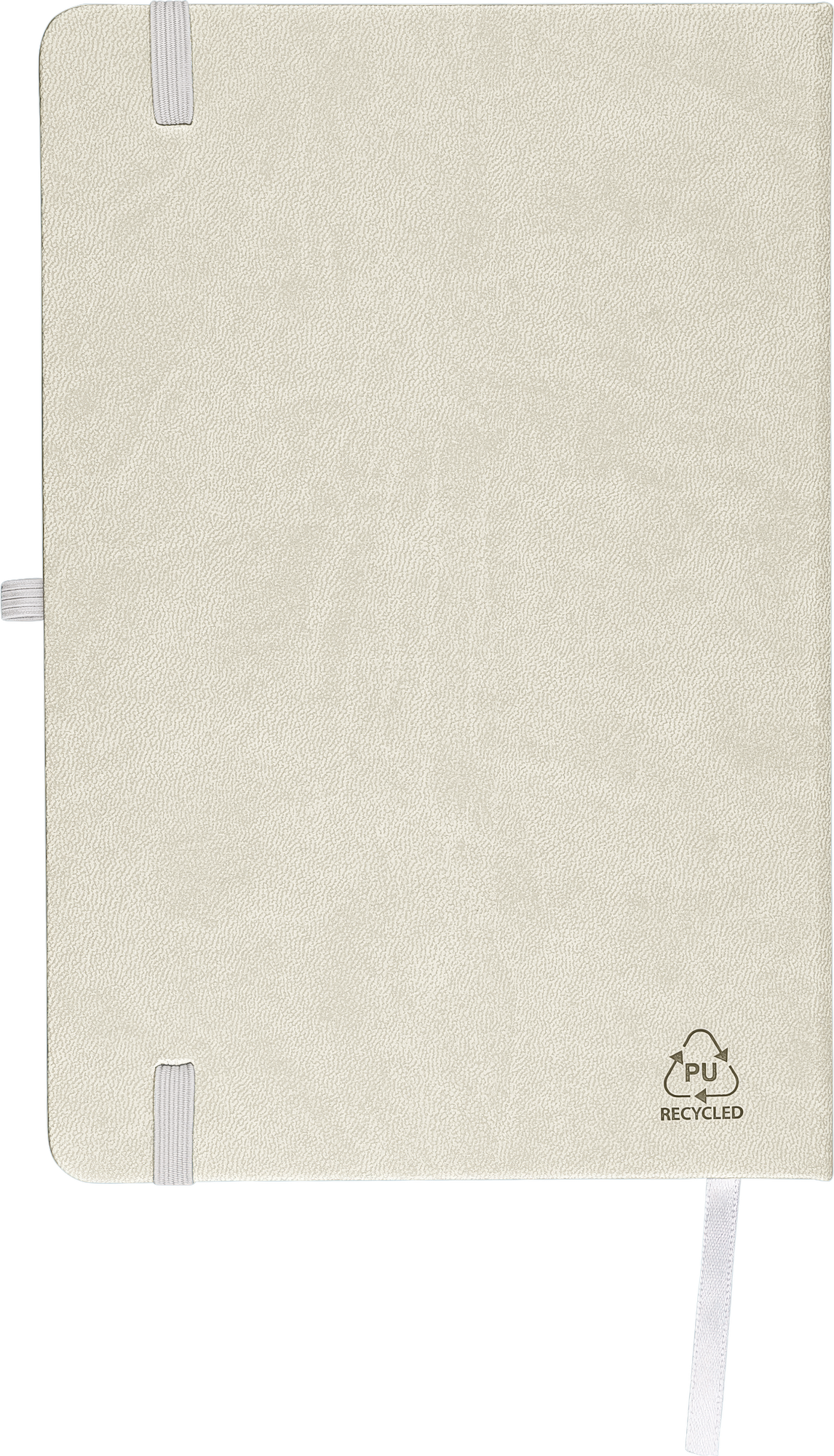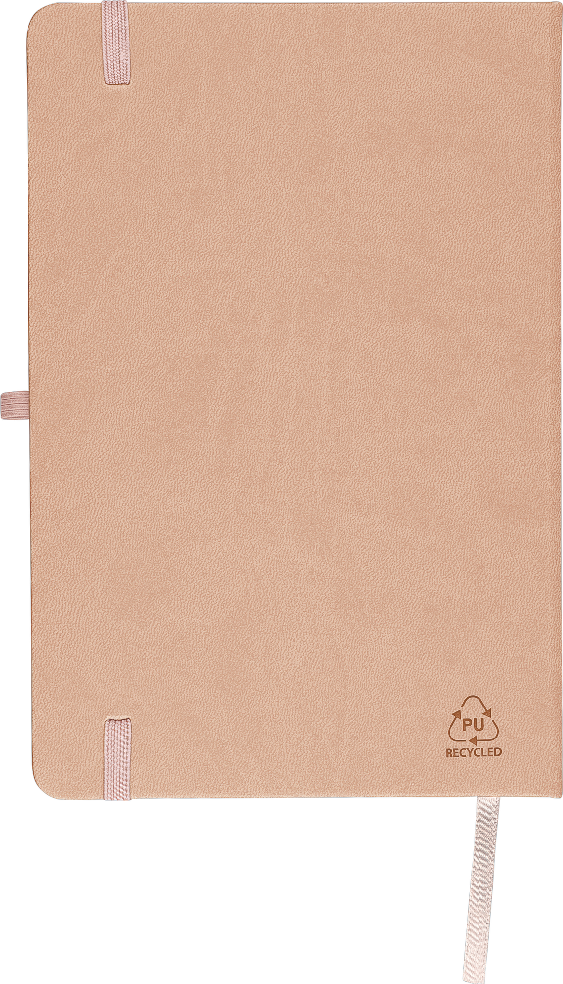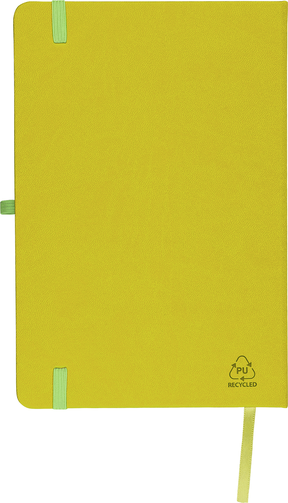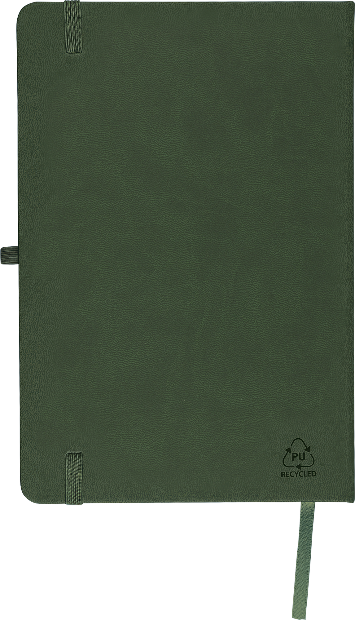 Notebook with a recycled hard cover and an embossed recycled logo on the back. The cover is suitable for laser engraving, revealing a subtle tone-on-tone colour effect. Includes 80 lined pages of 70 gsm paper, with matching coloured elastic band, ribbon marker, and pen loop. The paper in this notebook is FSC® Mix certified.
