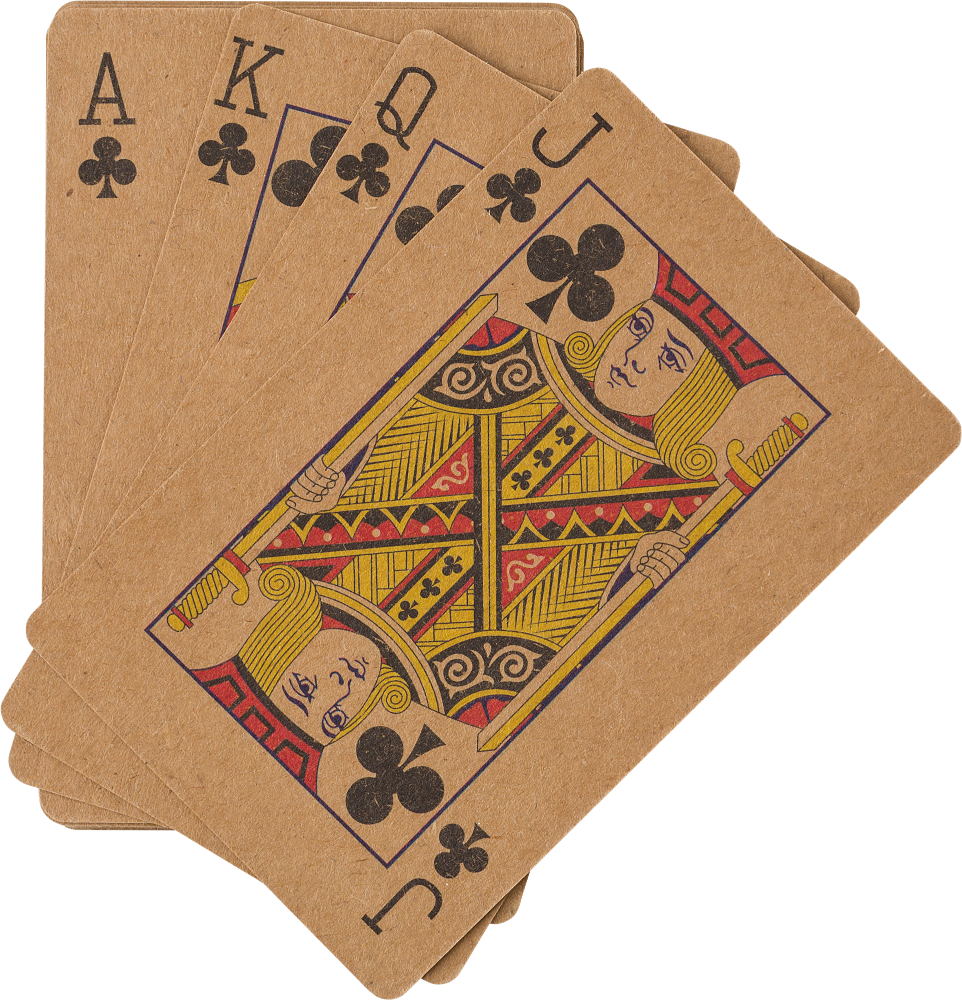 Recycled paper playing cards in a recycled cardboard box.