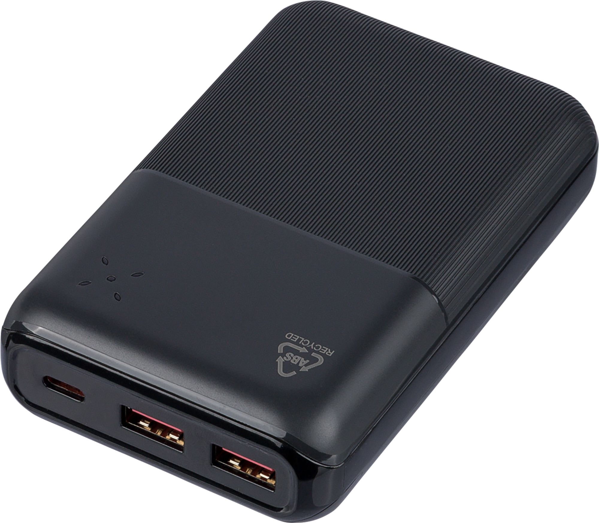 Recycled powerbank with a 20,000 mAh capacity. 22.5W fast charging. Type-C in/out, Type-A input. LED indicator, safety protections. Recycled logo on back. Packed in brown box