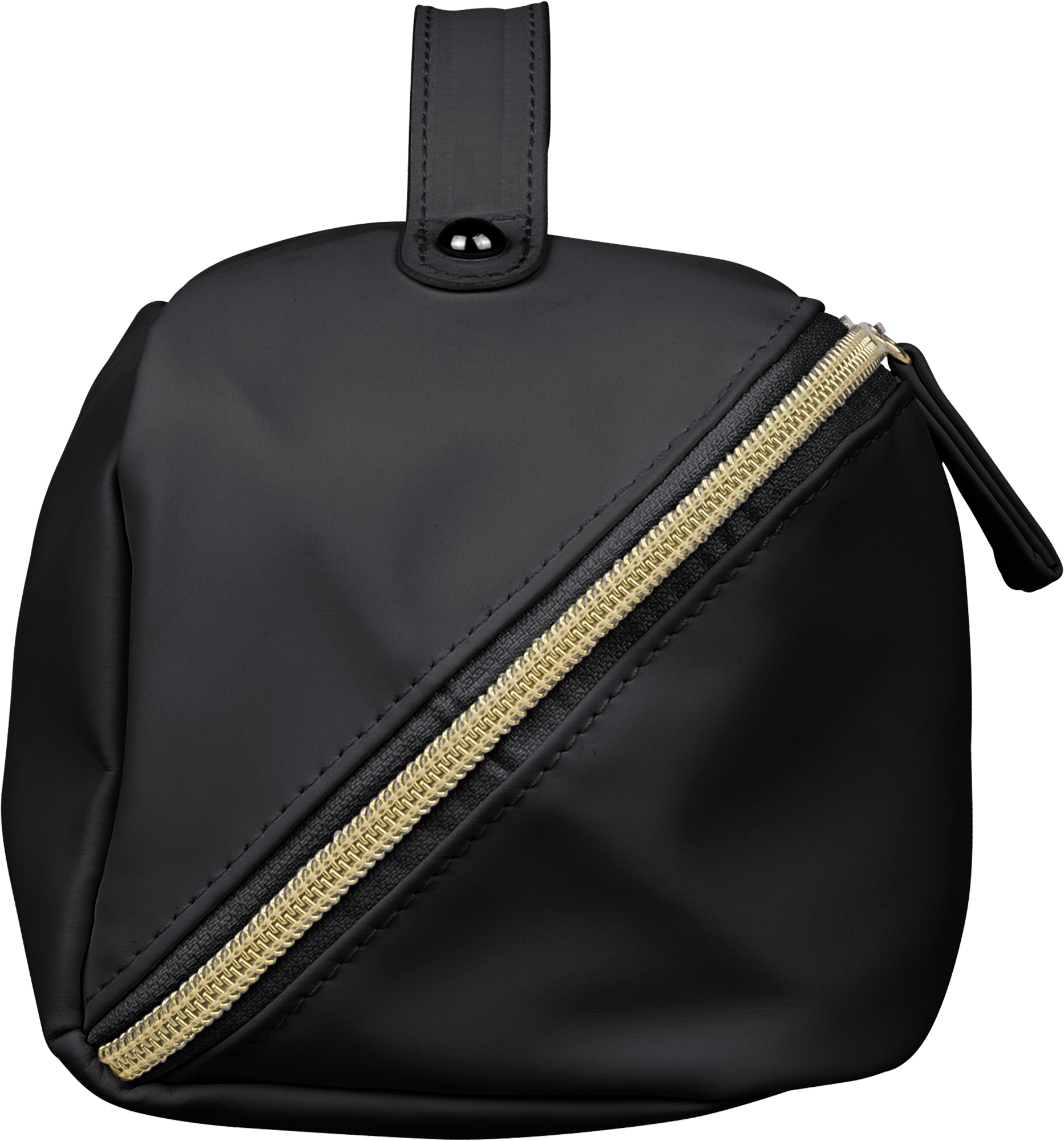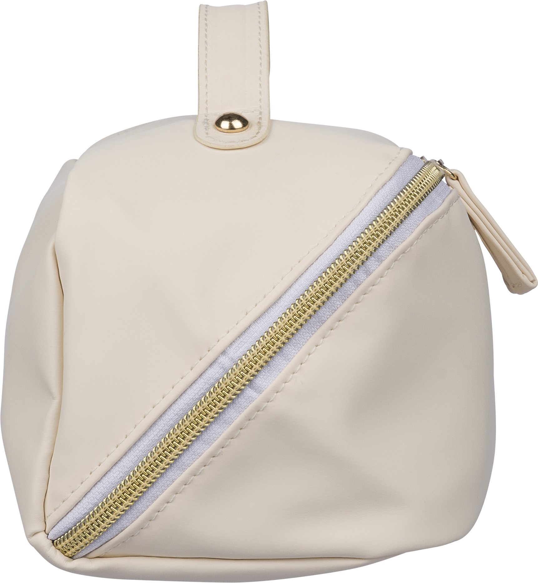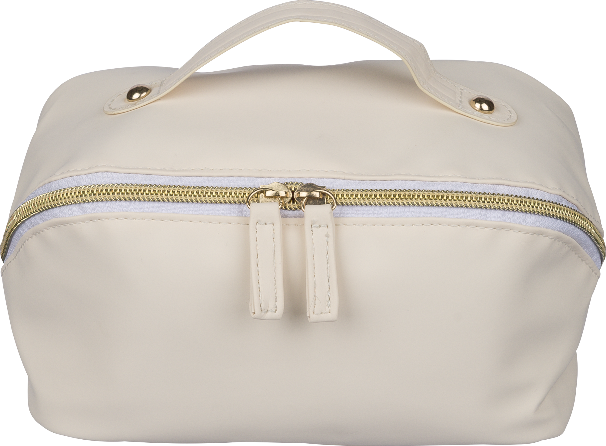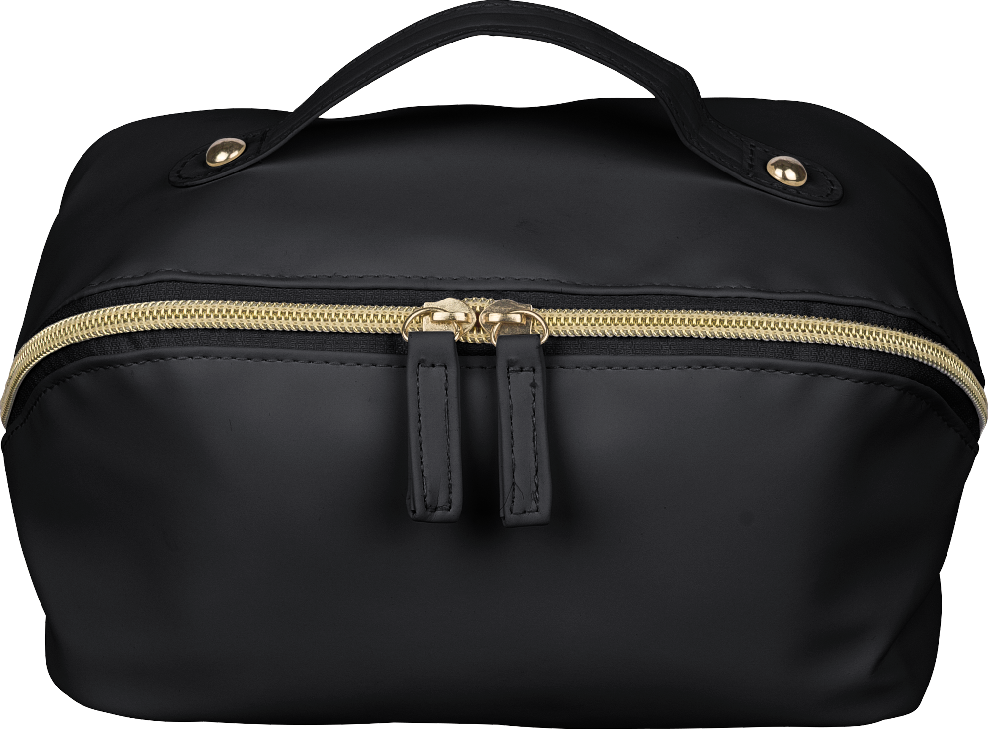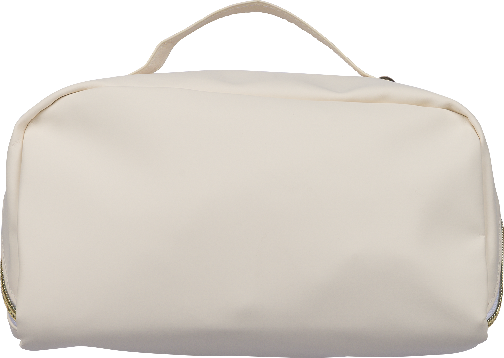 Stylish recycled toilet bag in a PU material. Features a carry handle, spacious interior with four compartments and inner zipped pocket.