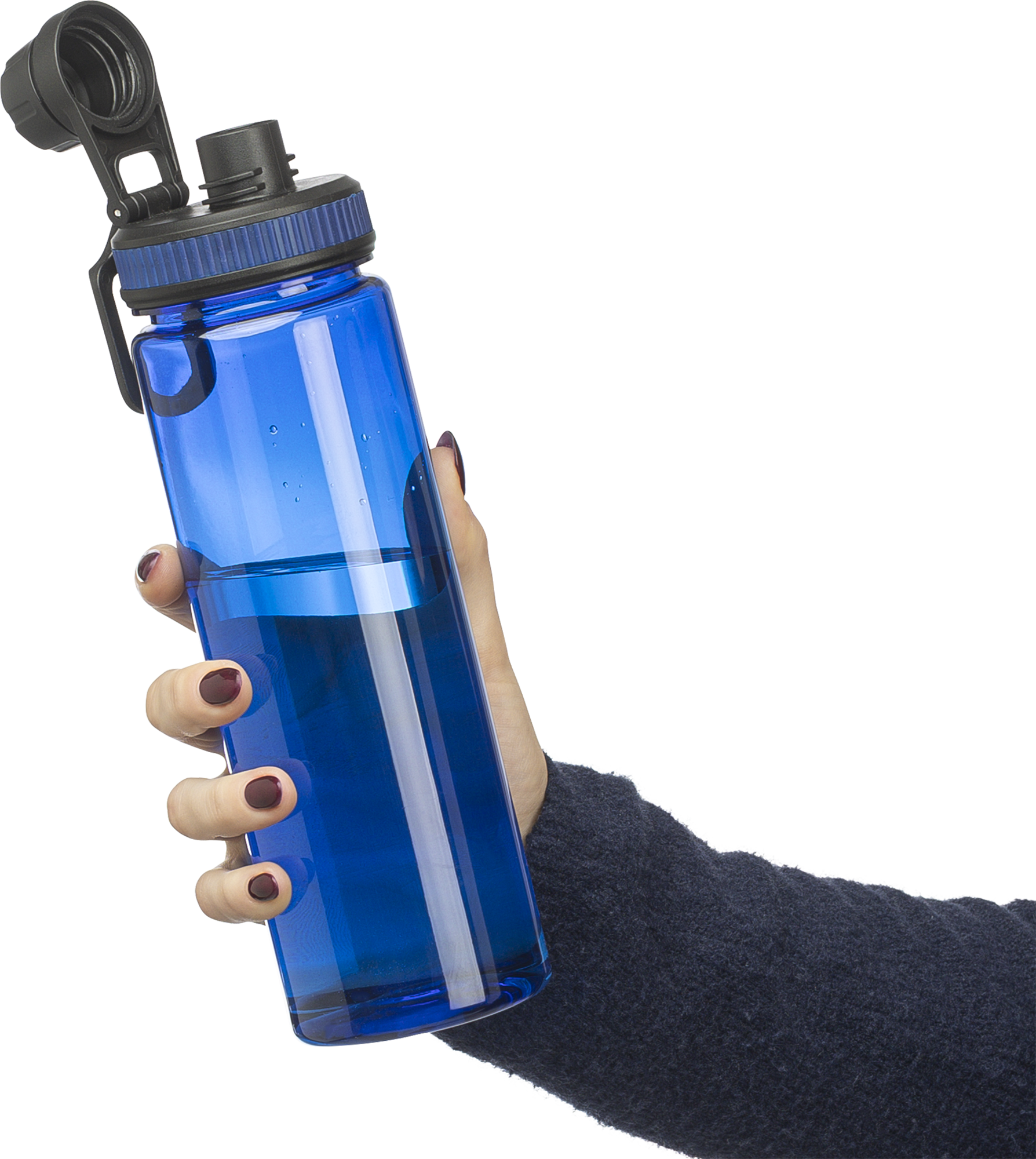 RPET drinking bottle (750ml) with carrying handle and screw cap.