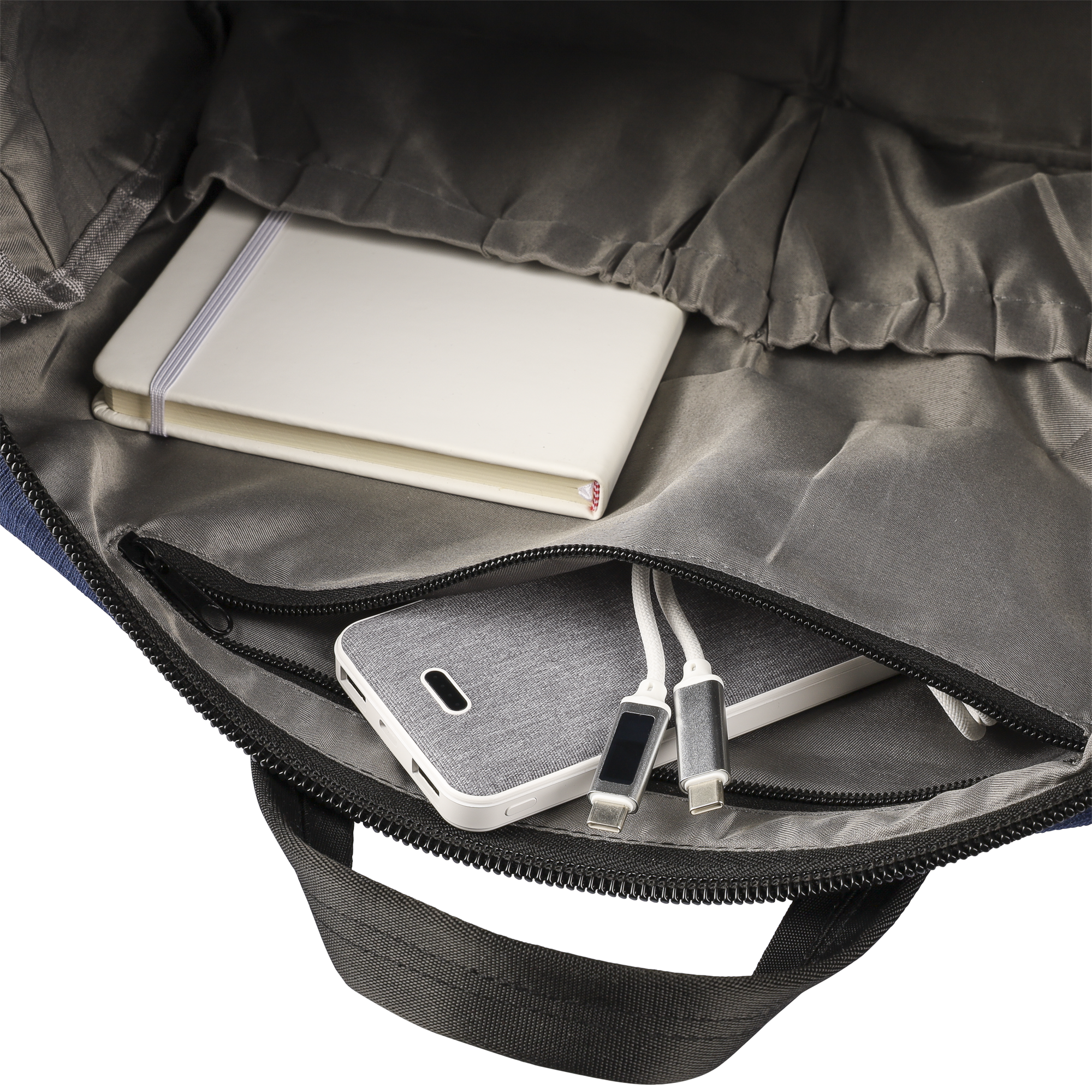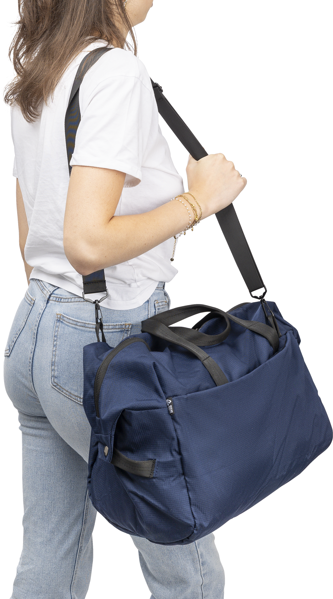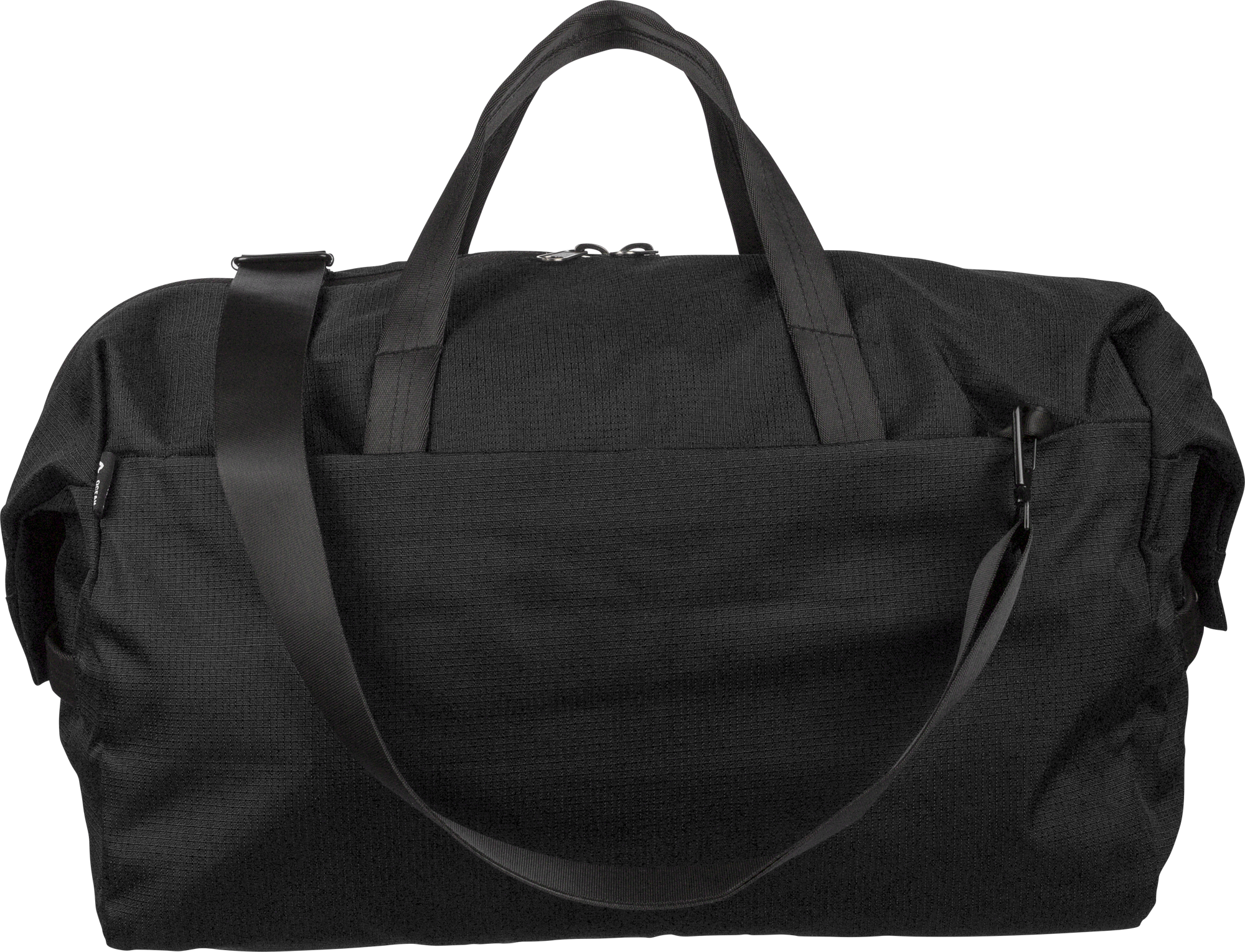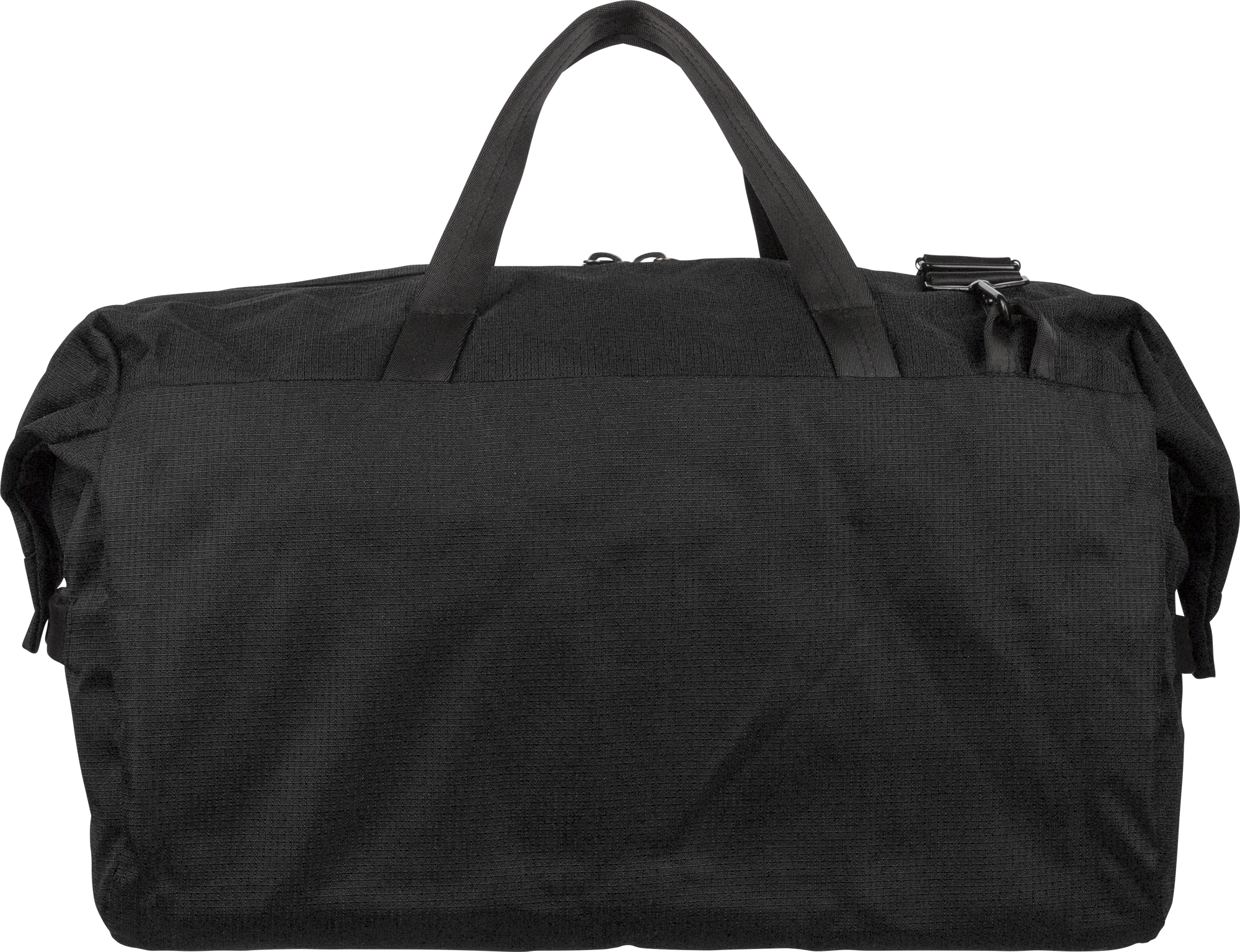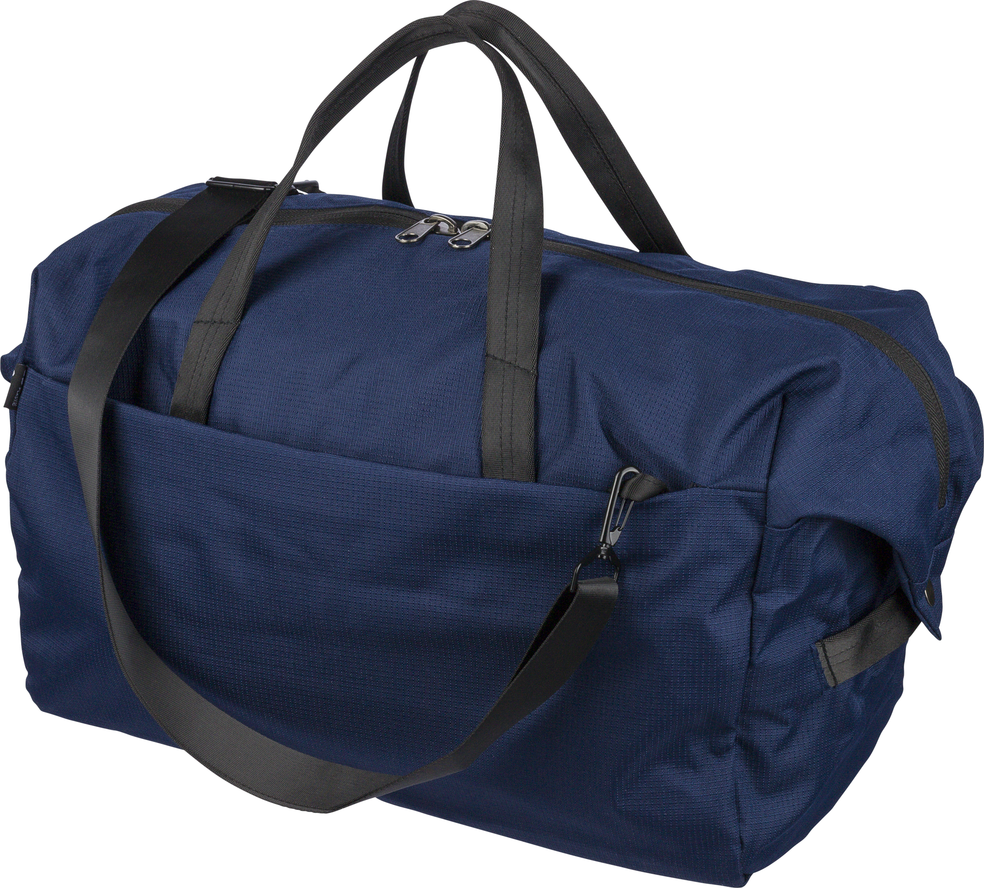 RPET Ocean Bound sports bag made from recycled ocean plastic with a durable, textured finish. 33.7 litre capacity with a large main compartment and front and inner zipped pockets. Features two sturdy handles, adjustable shoulder strap and Ocean Bound Plastic label.