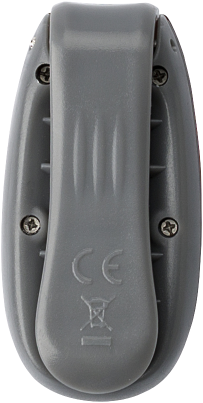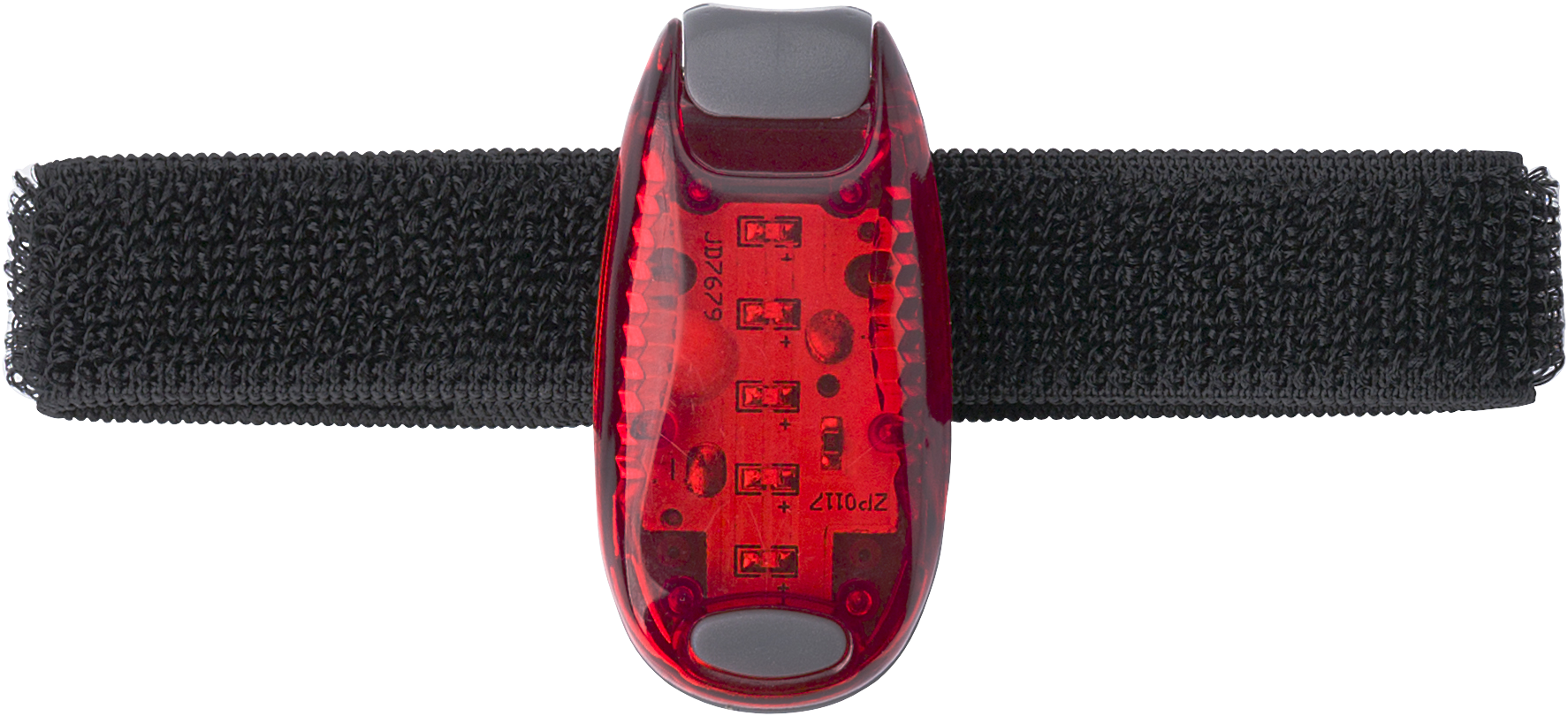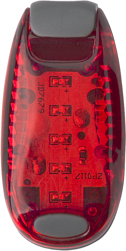 Safety light with two settings: constant and blinking. Comes with a clip to attach the light.