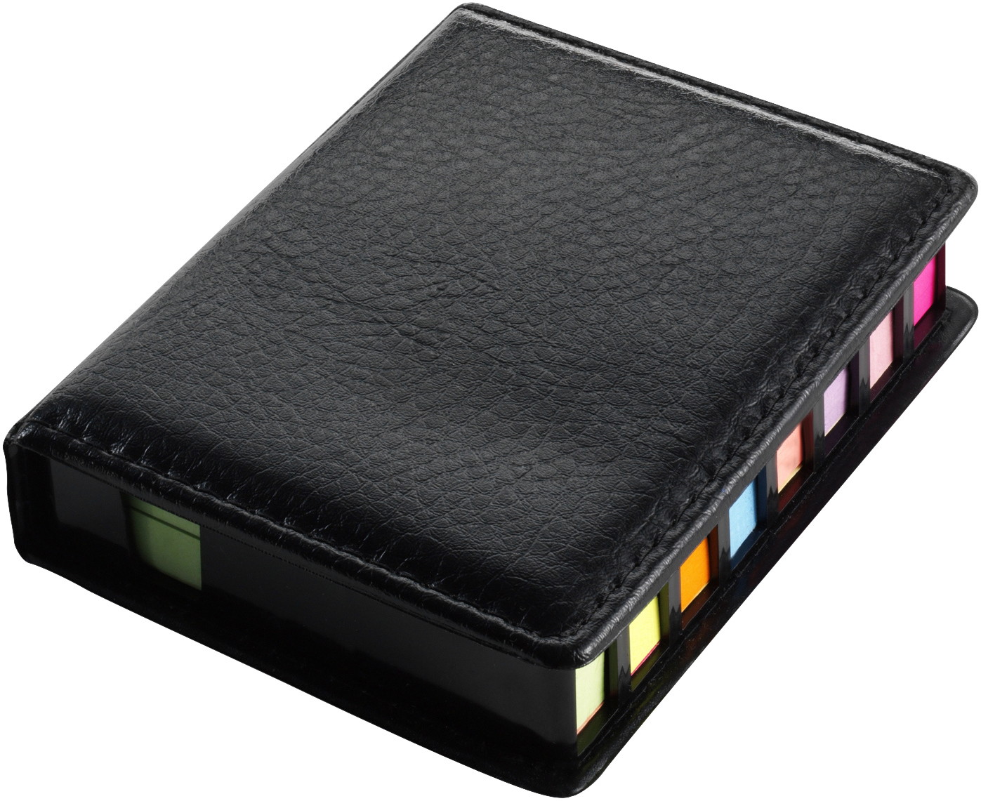 Plastic case holding approximately sixteen hundred self-adhesive memo papers and pads in different colours.