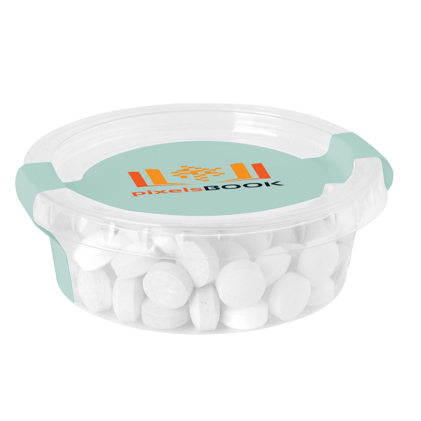 Small sweet tub made from renewable raw materials and 100% compostable filled with dextrose mints, sealed with a full colour paper printed label.