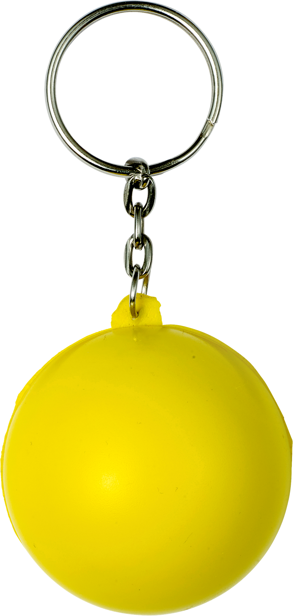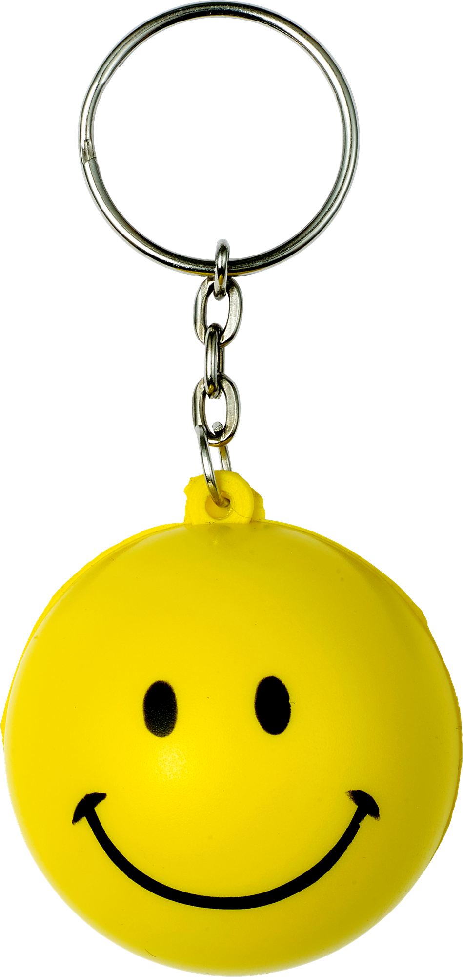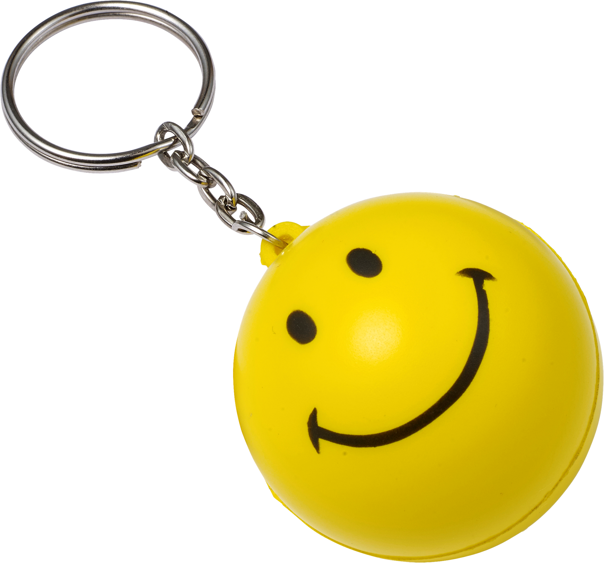 Keyring with anti-stress figure made of PU foam, 'smiling face' model.